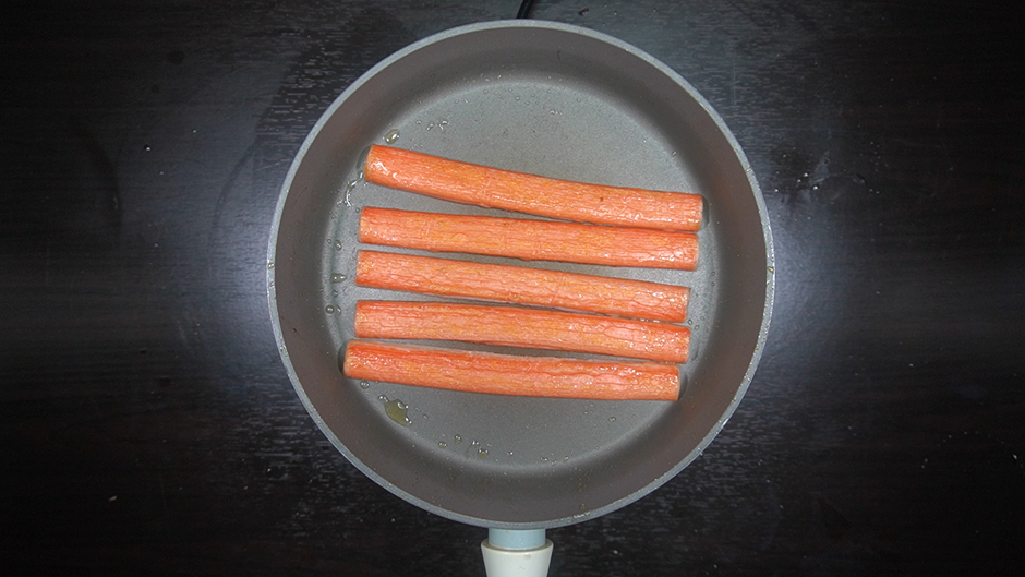 * 팬에 기름을 살짝 두른 뒤 맛살을 볶아서 넣는다.