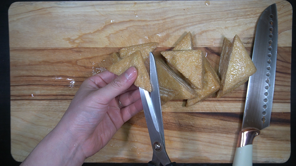 * 유부는 한쪽면을 잘라 넓게 펼쳐서 넣어준다.