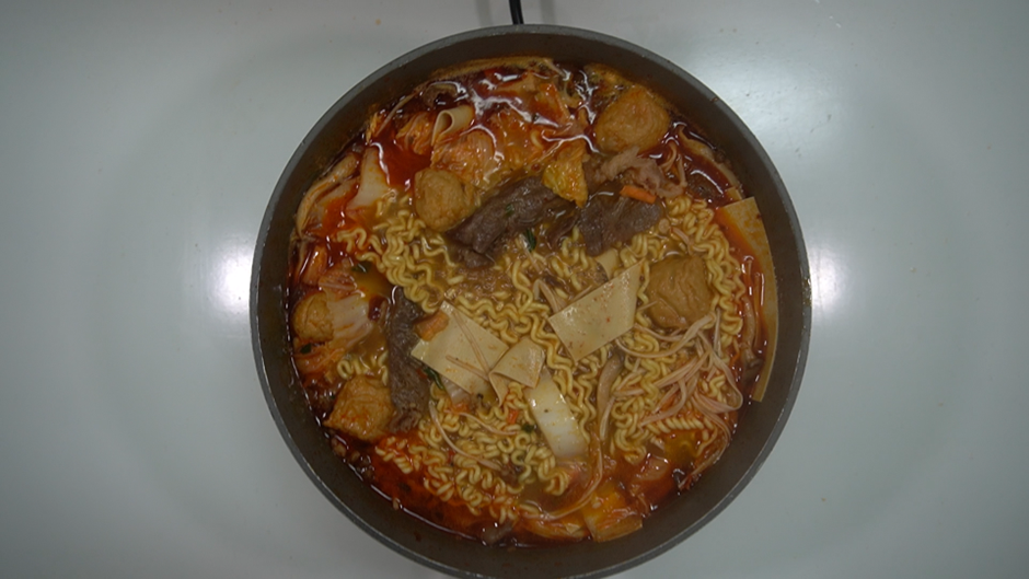 4. 국물이 팔팔 끓어오르면 라면을 넣고 익을 때 까지 끓여준다.