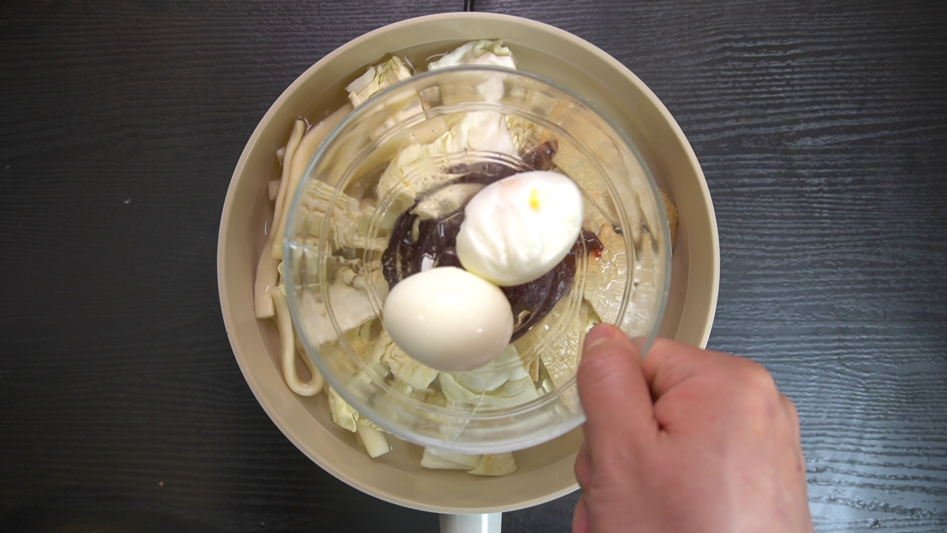 3. 완성된 양념과 삶은 계란을 넣어준다.