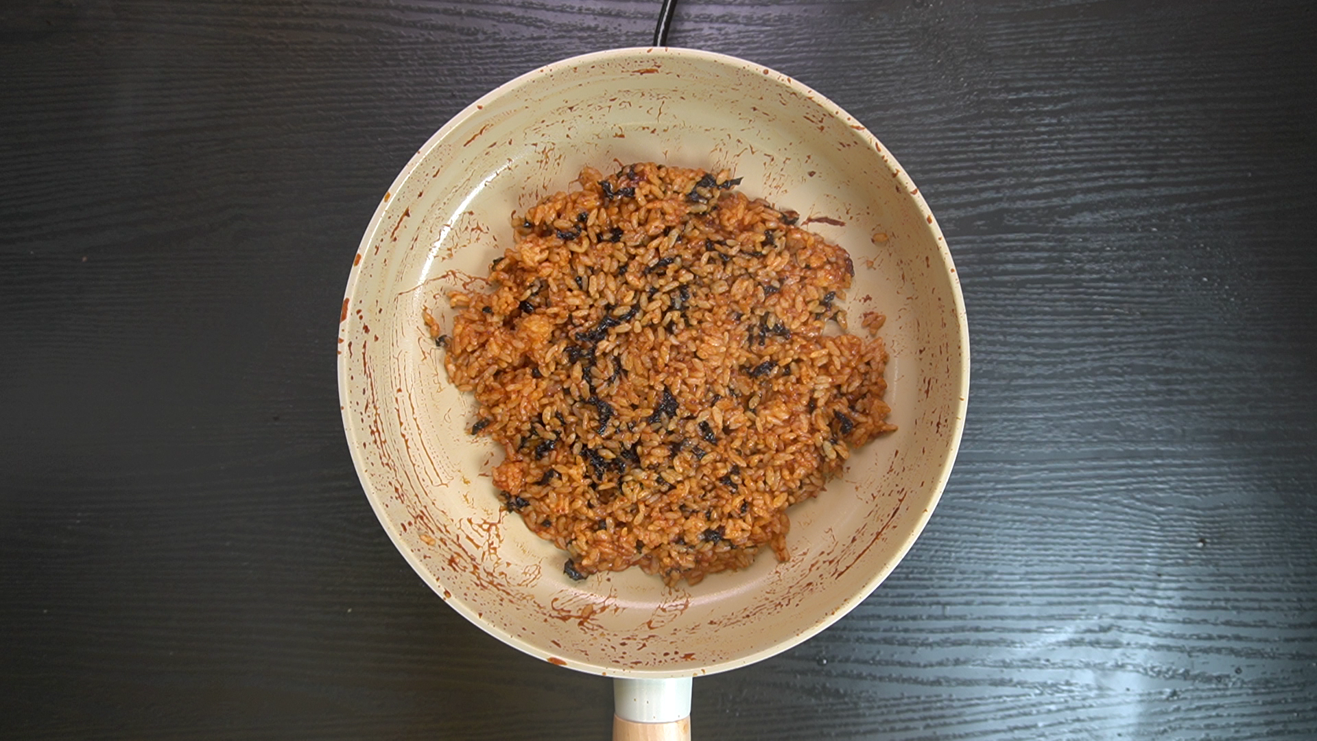 6. 밥과 김가루를 넣고 골고루 볶는다.