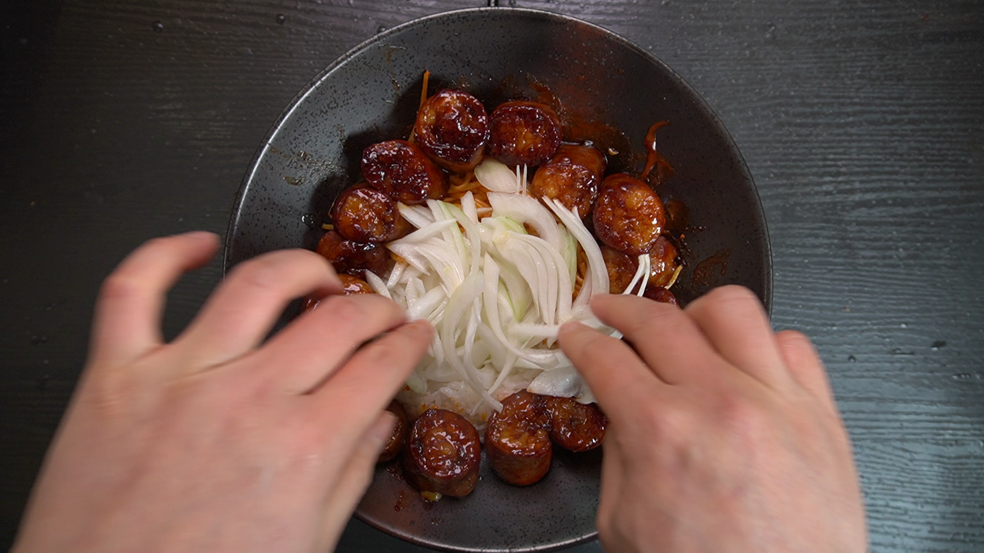 2. 채 썬 양파를 찬물에 담궈놓는다.