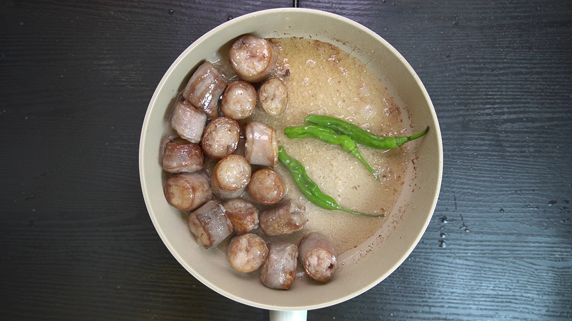 4. 기름을 한 번 닦은 후 대창에 아래의 재료를 넣고 양념을 한다.