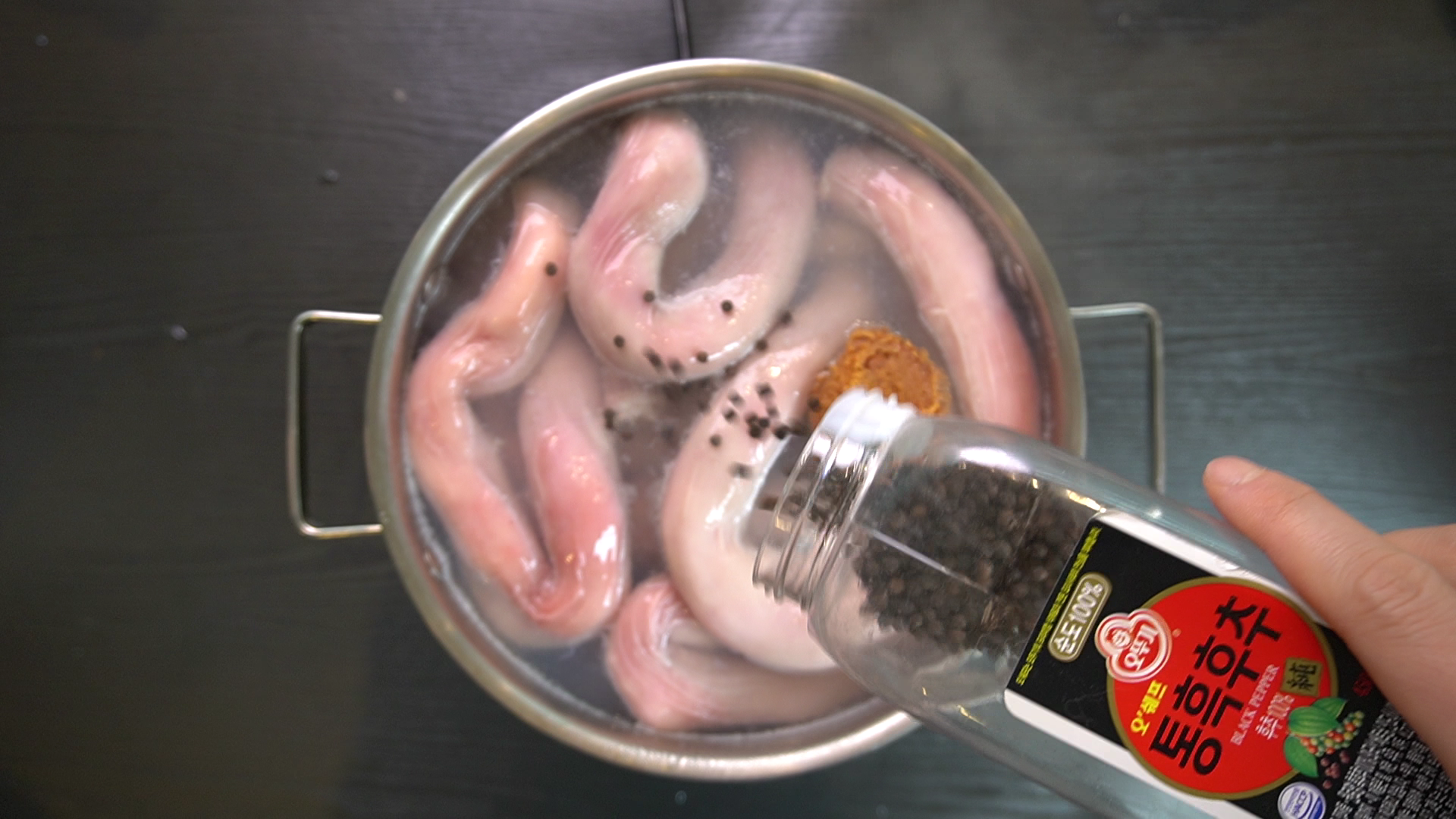 1. 끓는 물에 아래의 재료를 넣고 1시간 동안 삶는다.