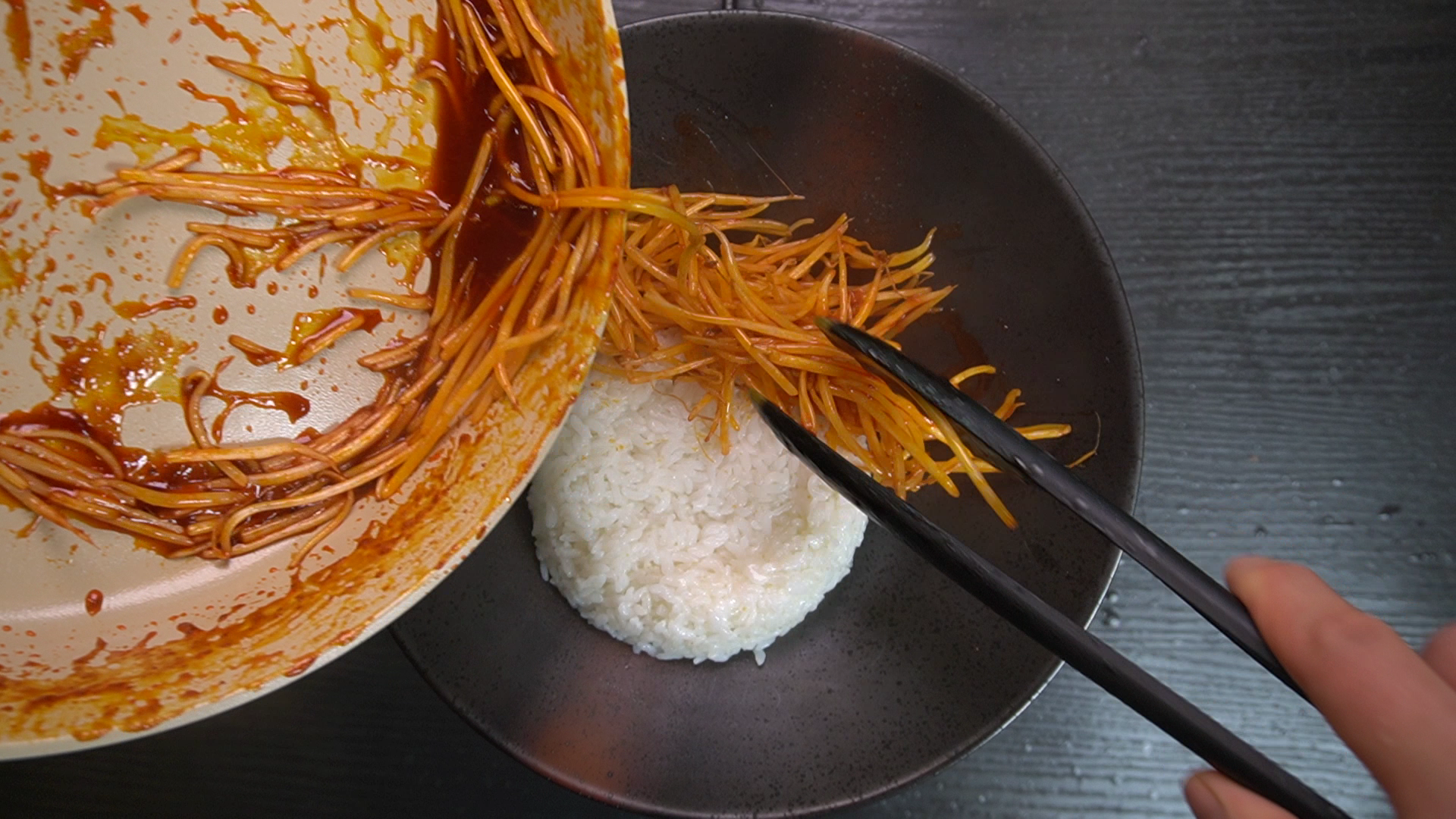 5. 남은 양념에 숙주를 넣고 살짝 익힌다.