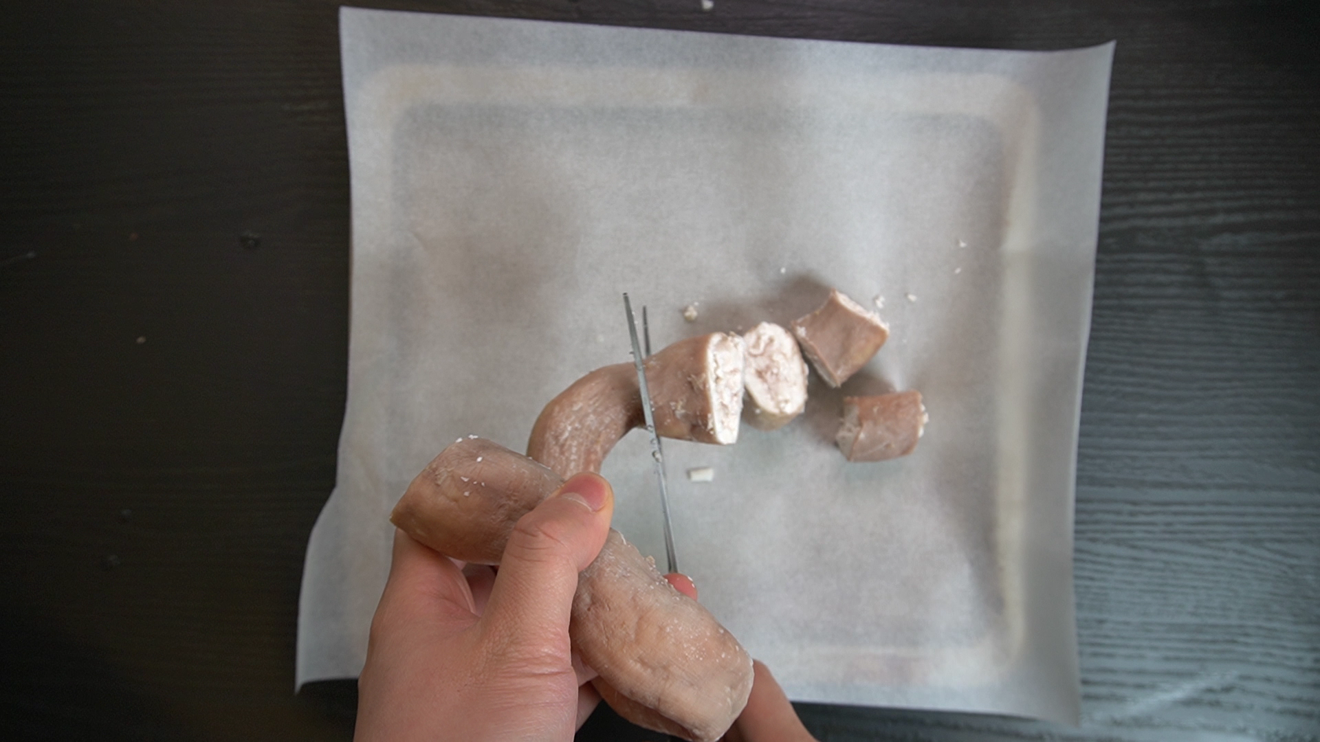 2. 삶은 소대창을 한 입 크기로 잘라서 180도 에어프라이어에 30분 굽는다.
