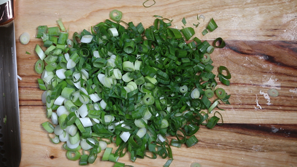 2. 후라이팬에 식용유를 두르고(약 6숟가락) 썰어둔 파를 모두 넣는다.