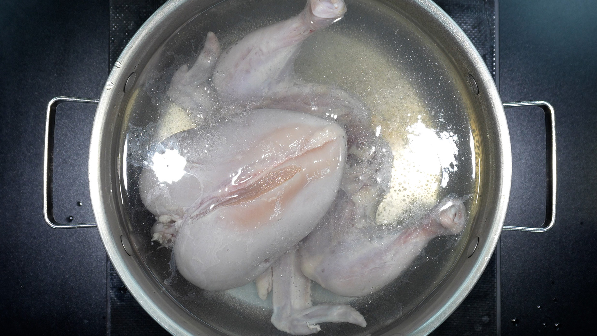 2. 끓는 물에 손질한 닭을 넣고 50분 동안 삶는다.