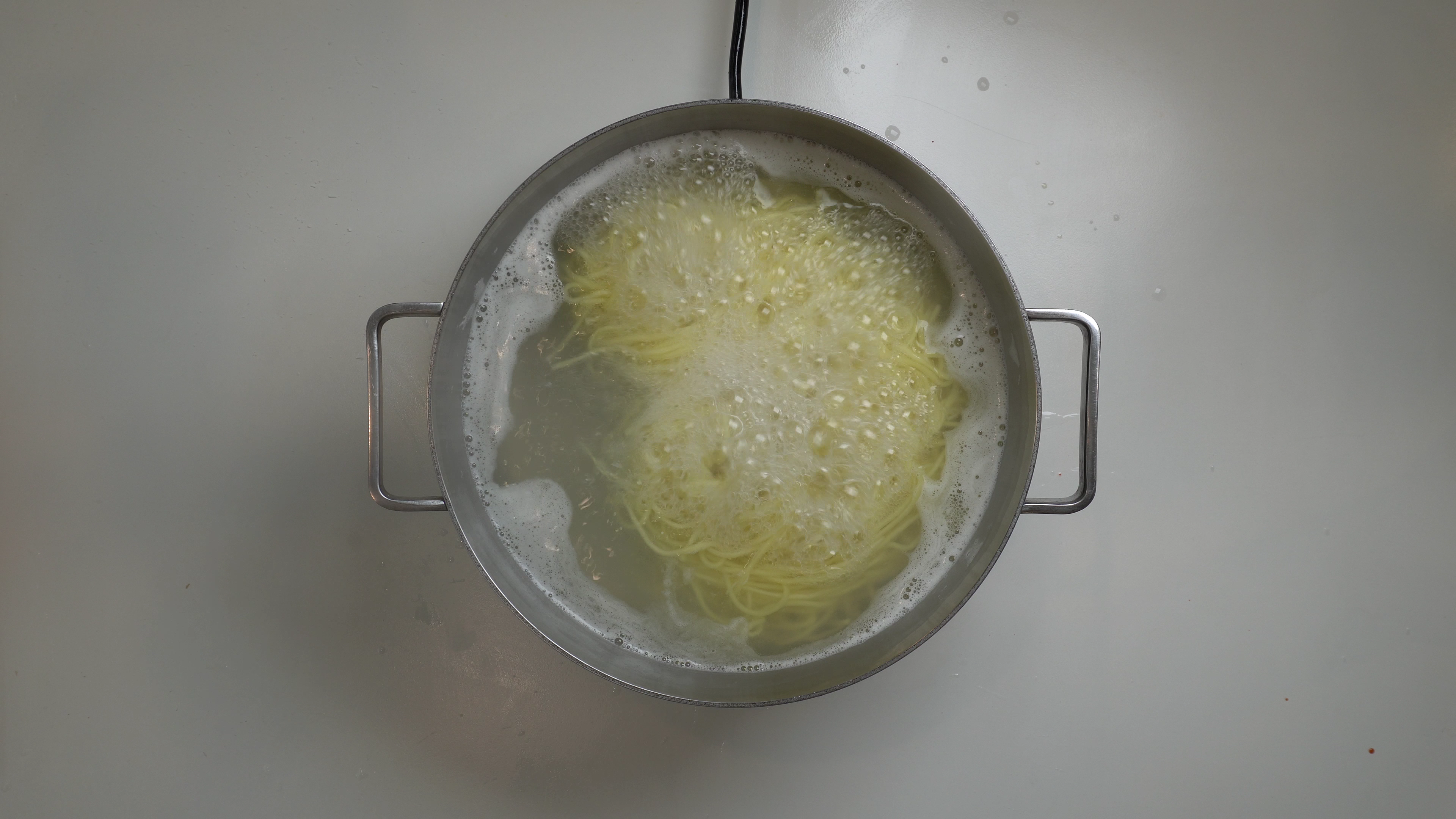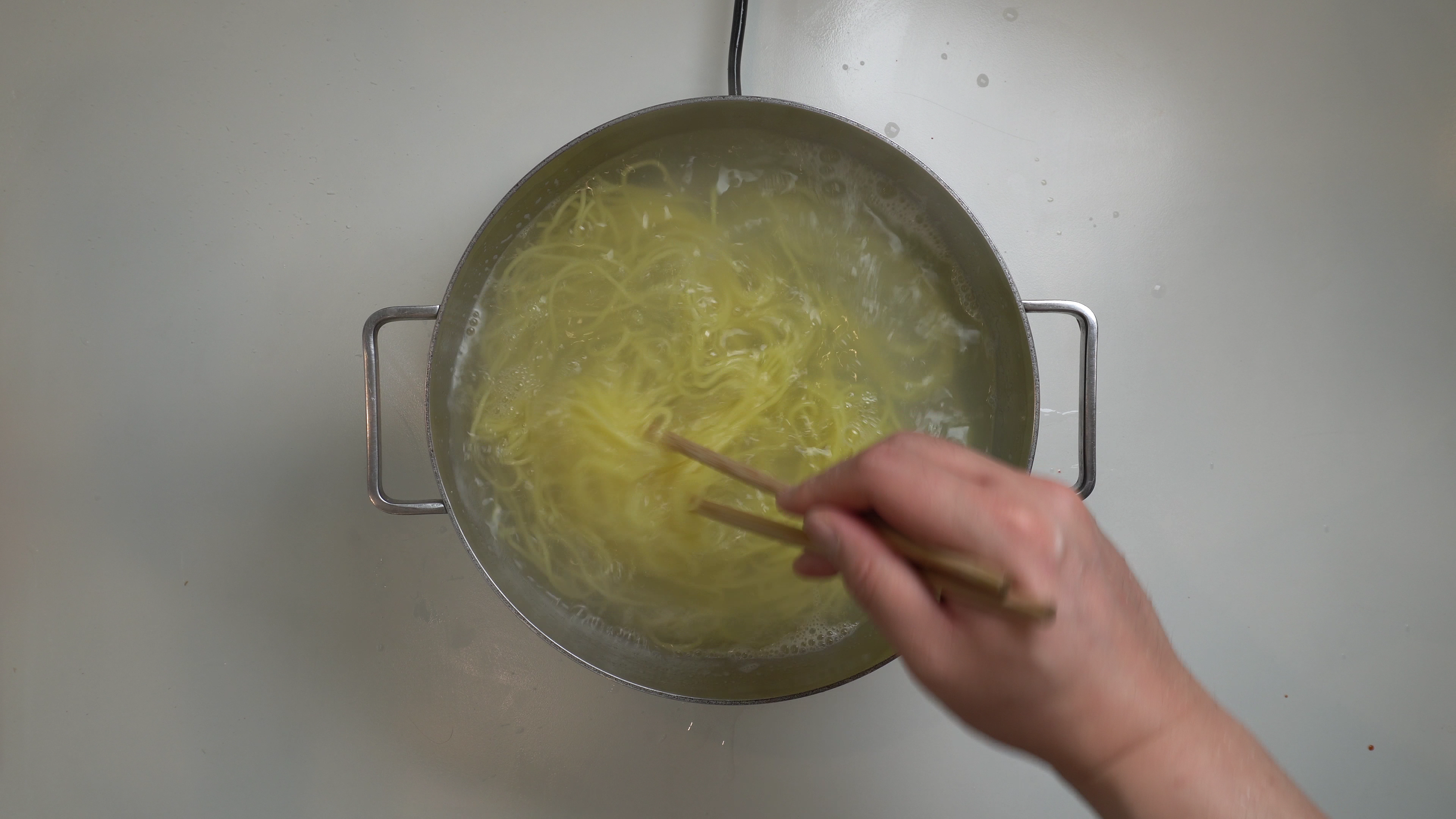 3. 끓는 물에 중화면을 넣고 삶는다.