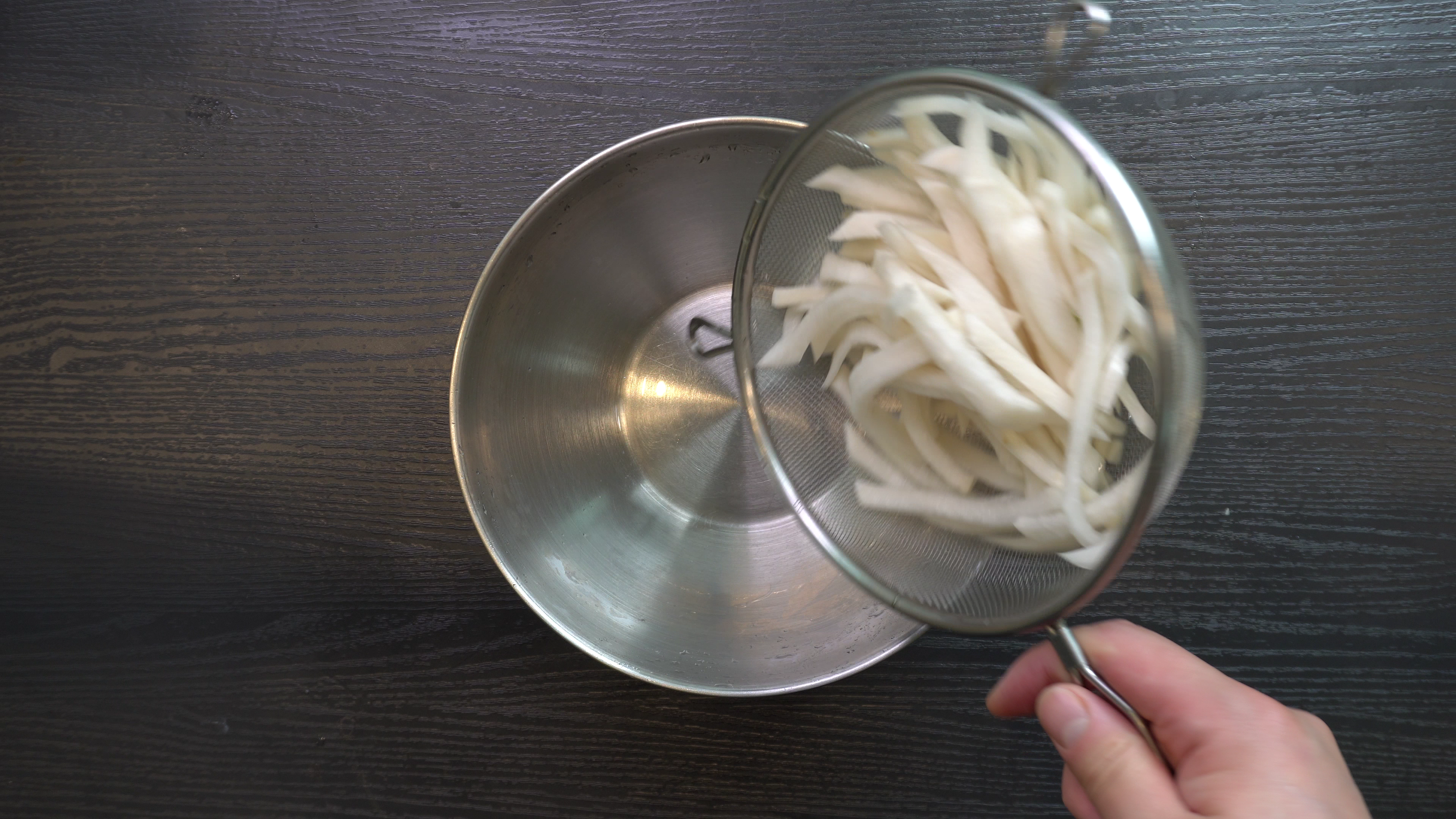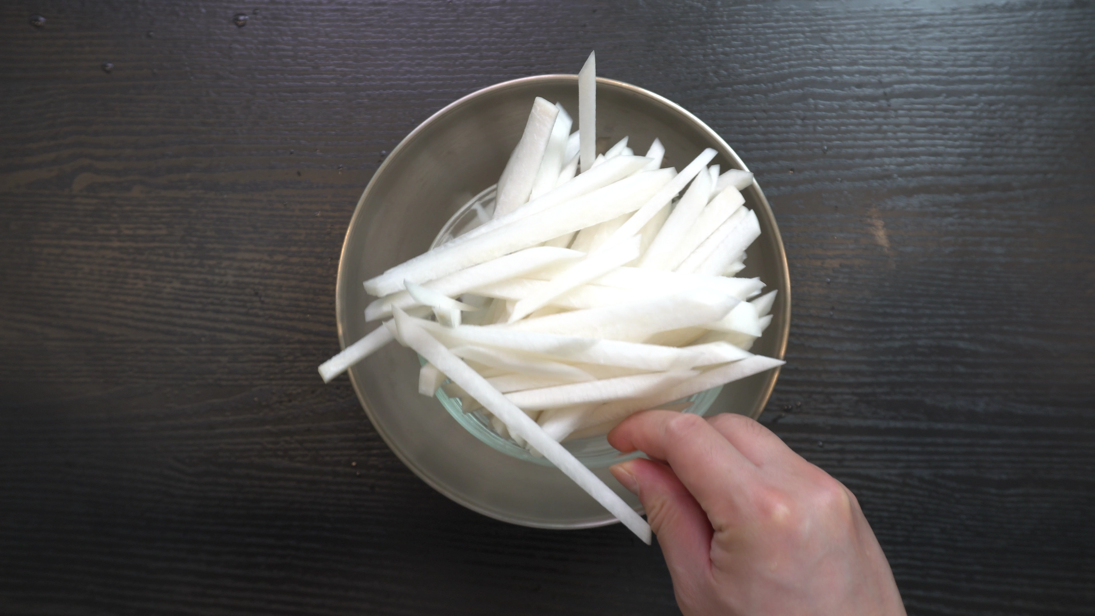 1. 채썬 무에 올리고당 5숟가락을 넣고 3시간 이상 재운다.