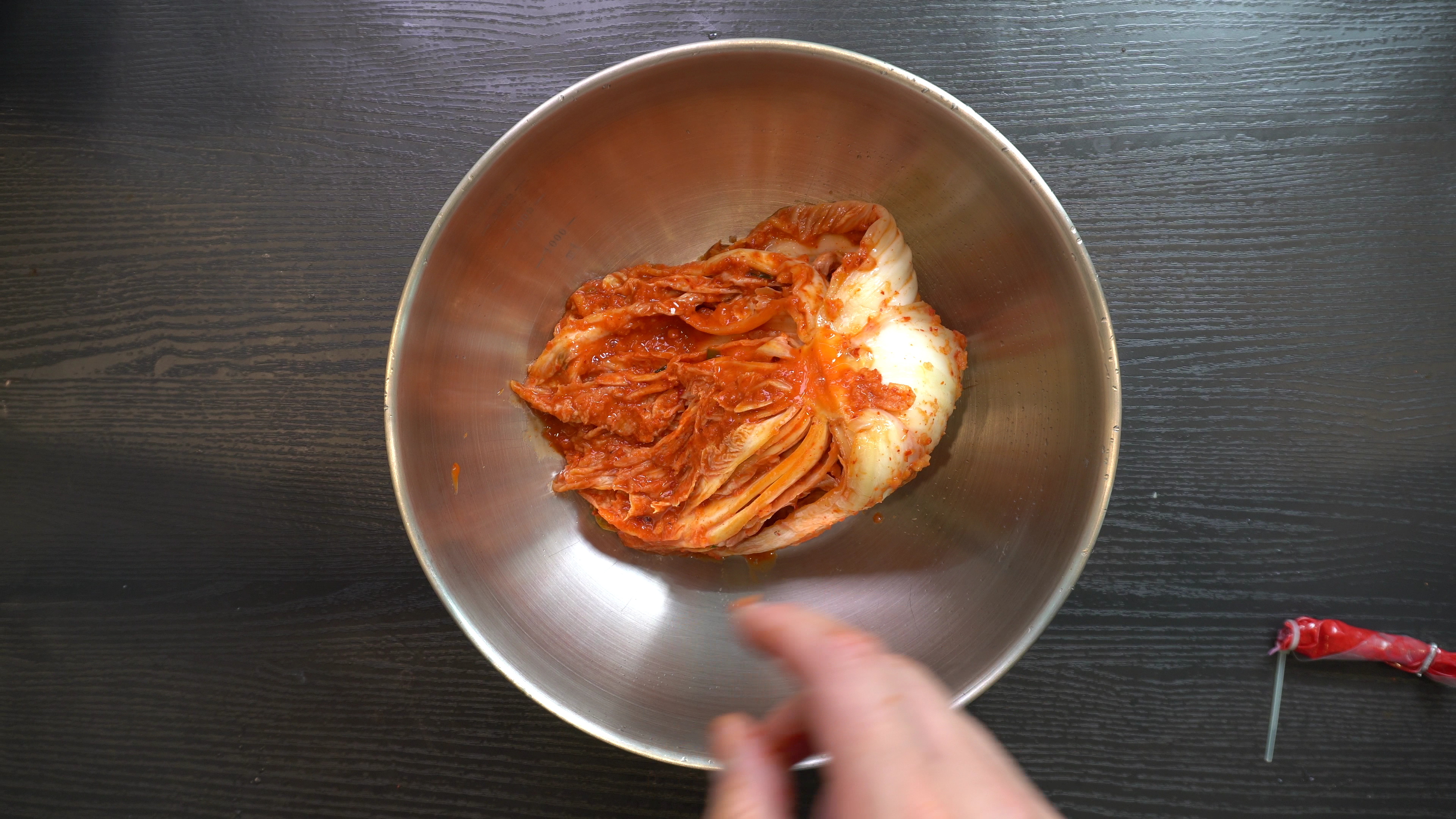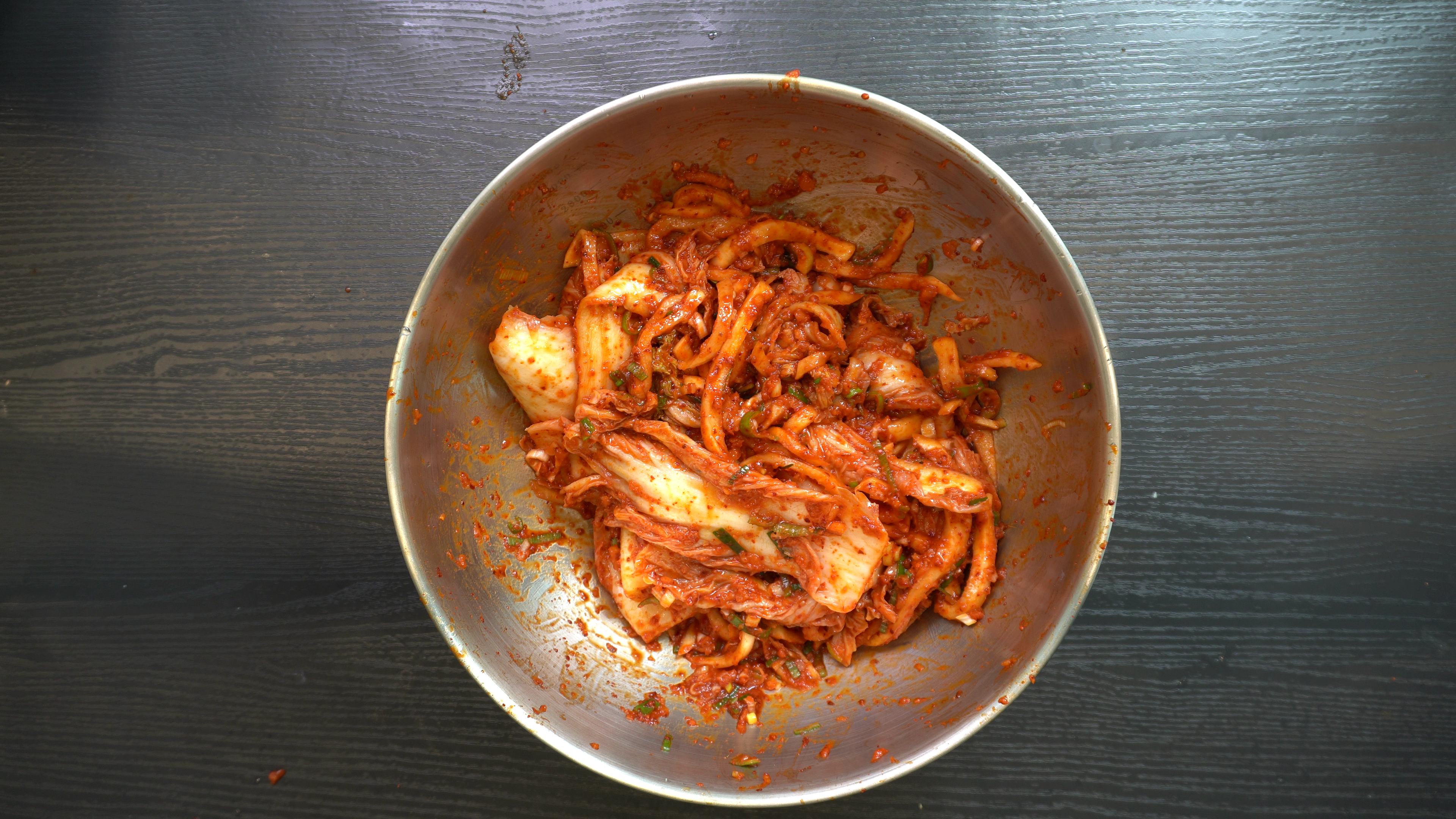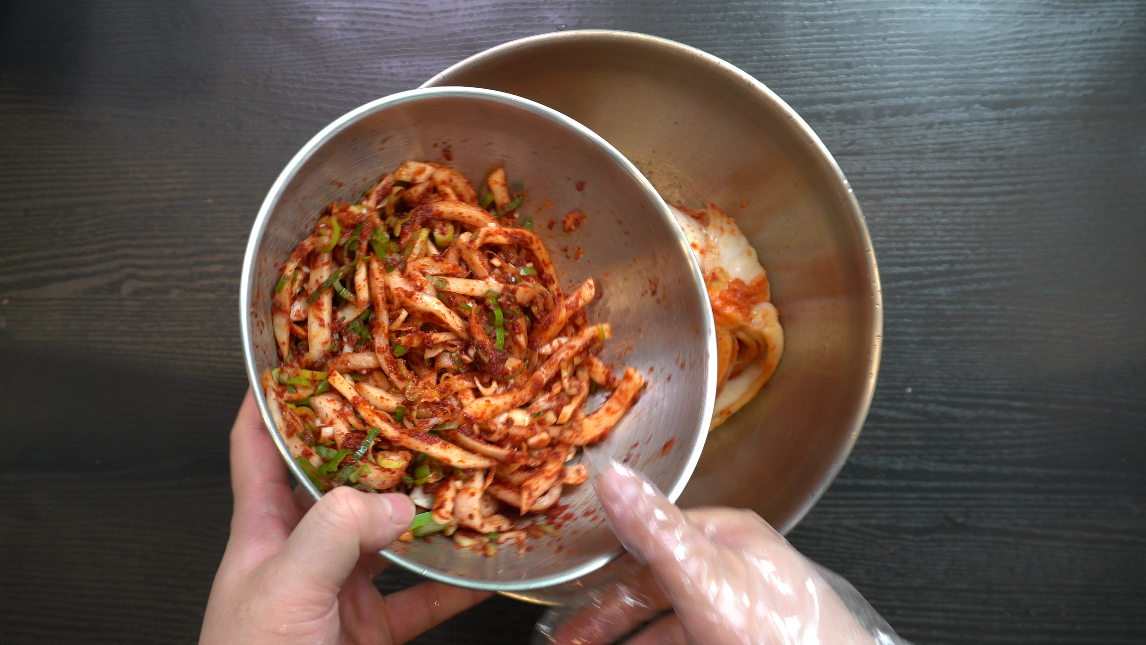 3. 시중에서 파는 김치 600g 에 양념한 무채를 넣고 버무리면 완성!