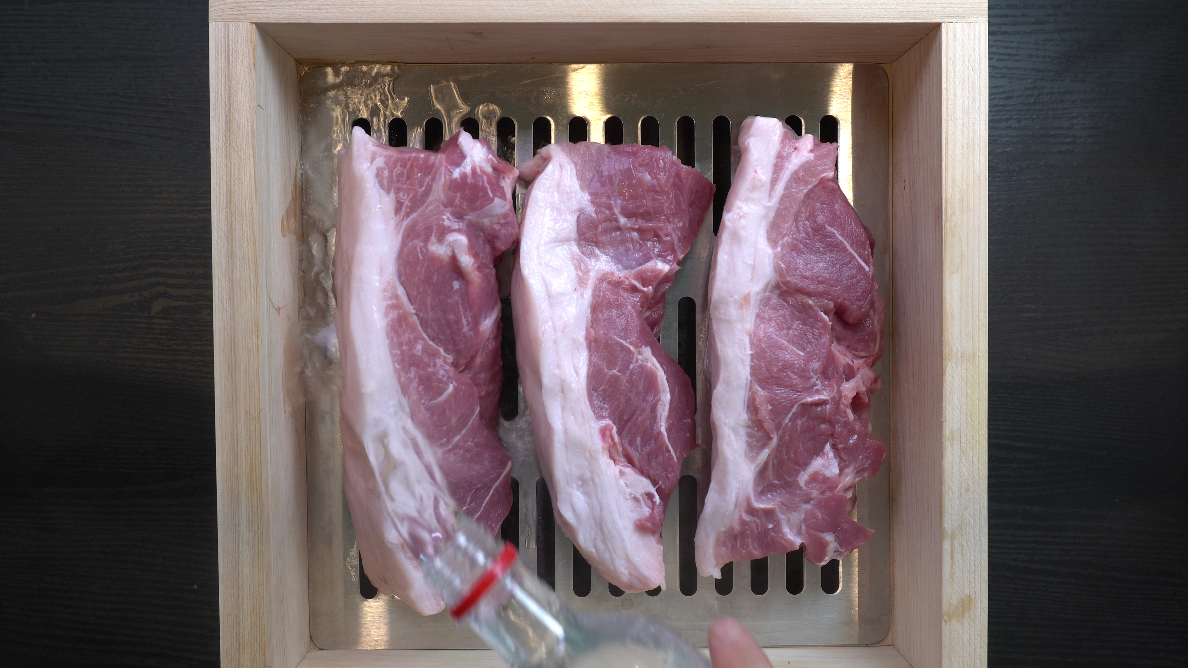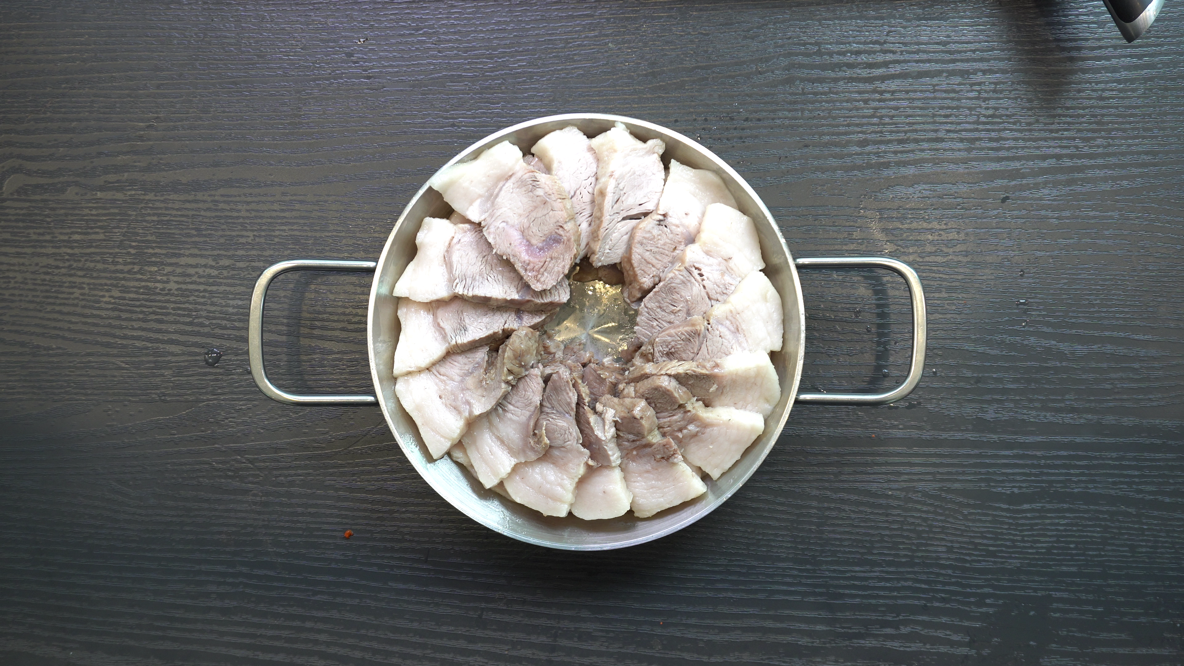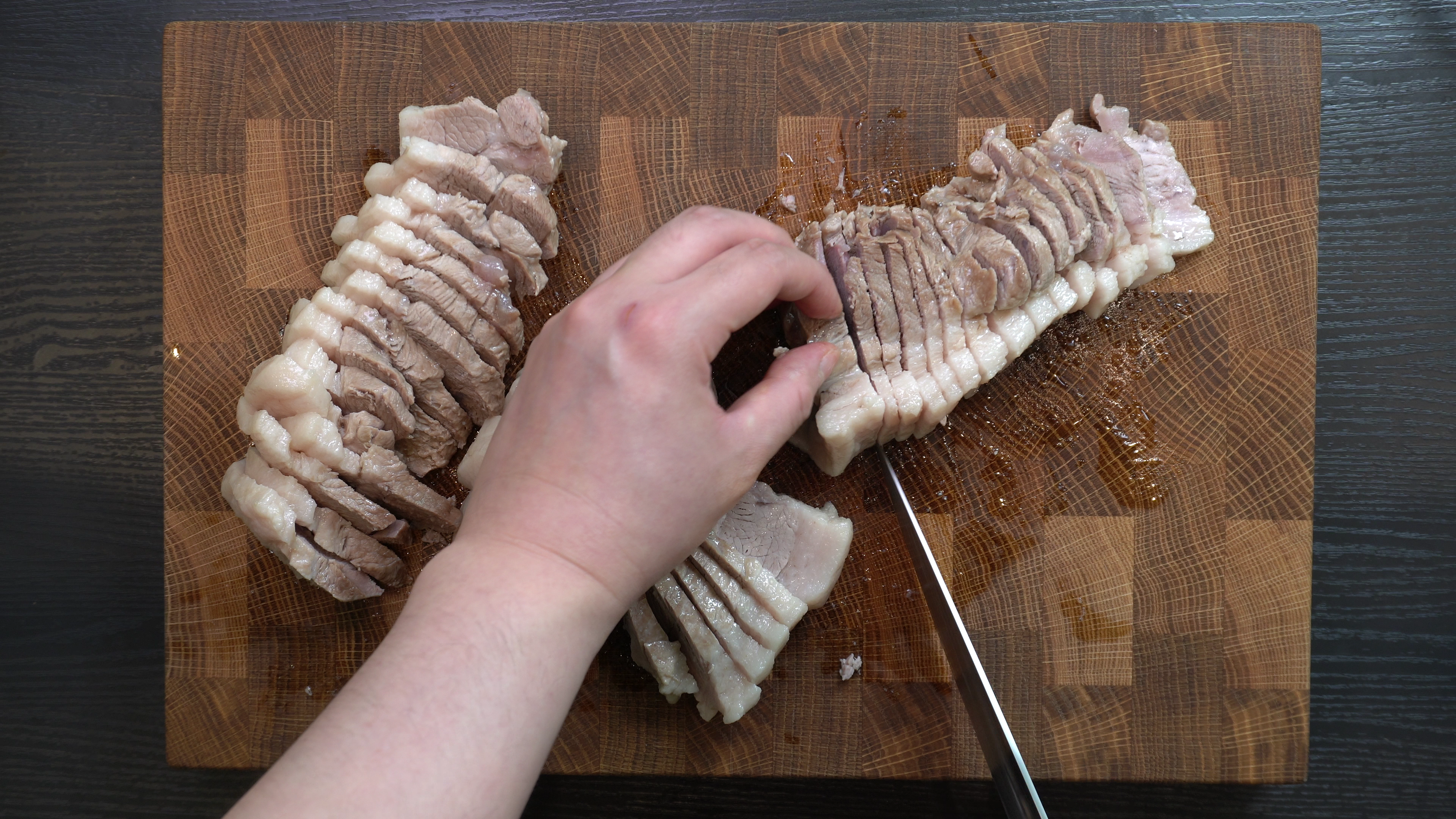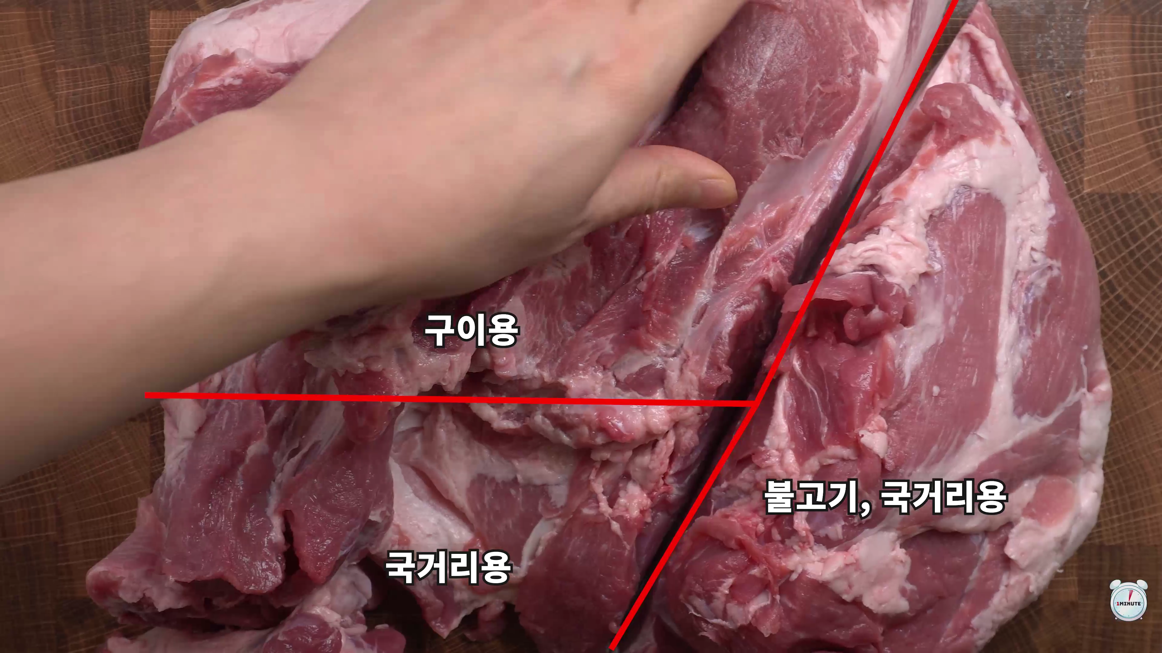 4. 앞다리살 중에 비계가 적절하게 섞여있는 구이용 부위를 두툼하게 썰어준다.