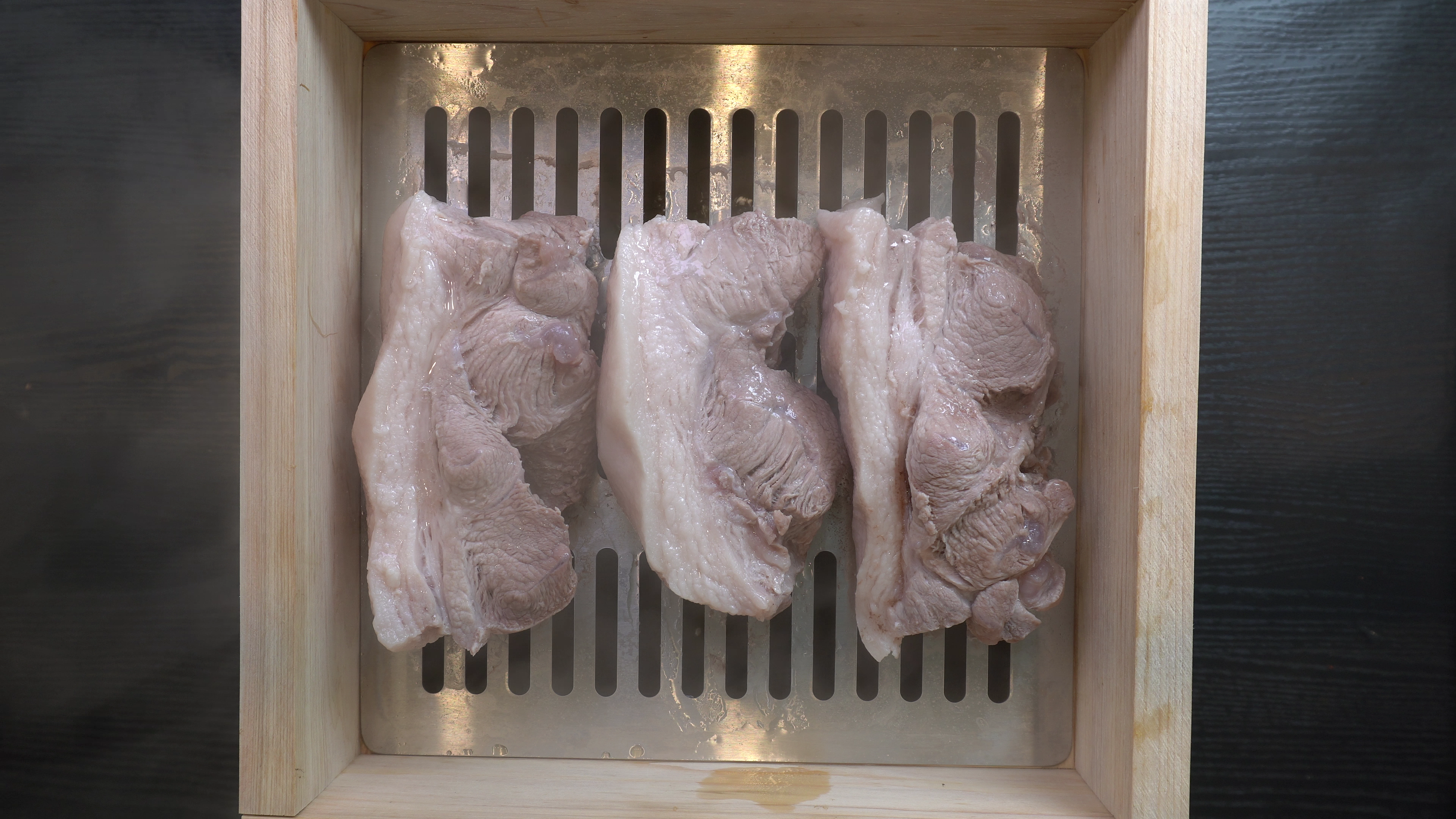 5. 찜기에 앞다리살과 소주를 넣고 40분간 쪄주면 완성!