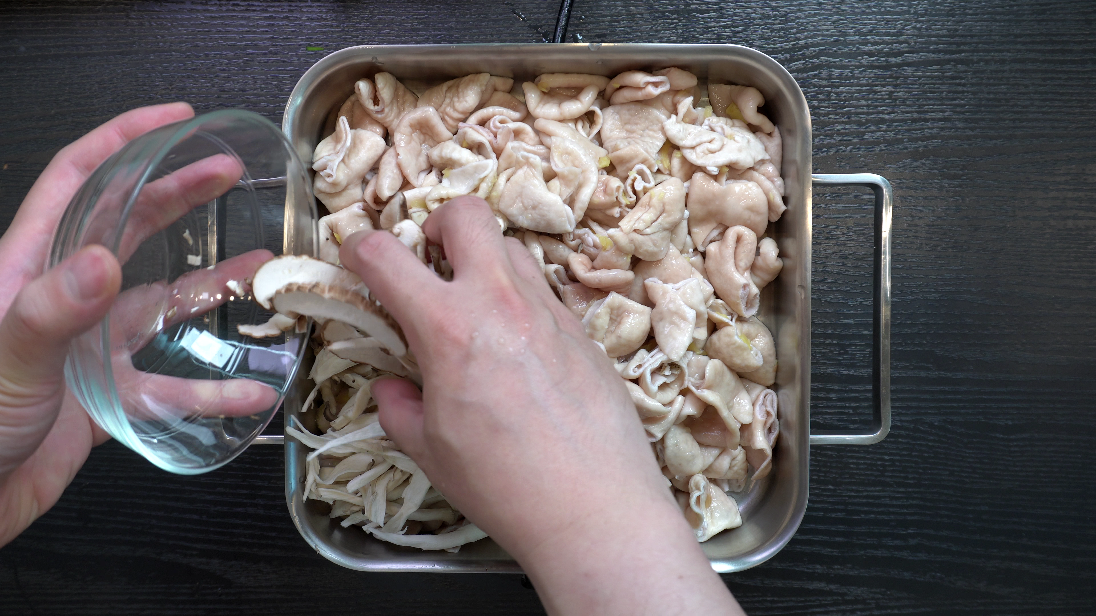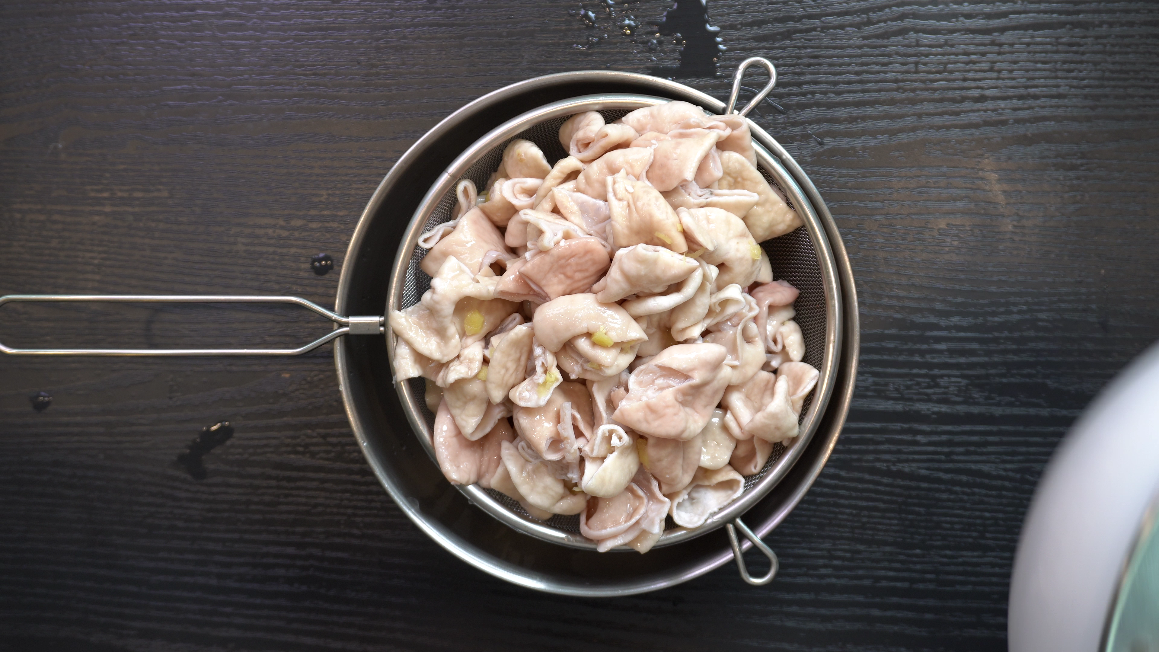 2. 하루 뒤 곱창을 채에 받쳐서 물기를 빼주고 냄비에 아래 재료들을 넣는다.