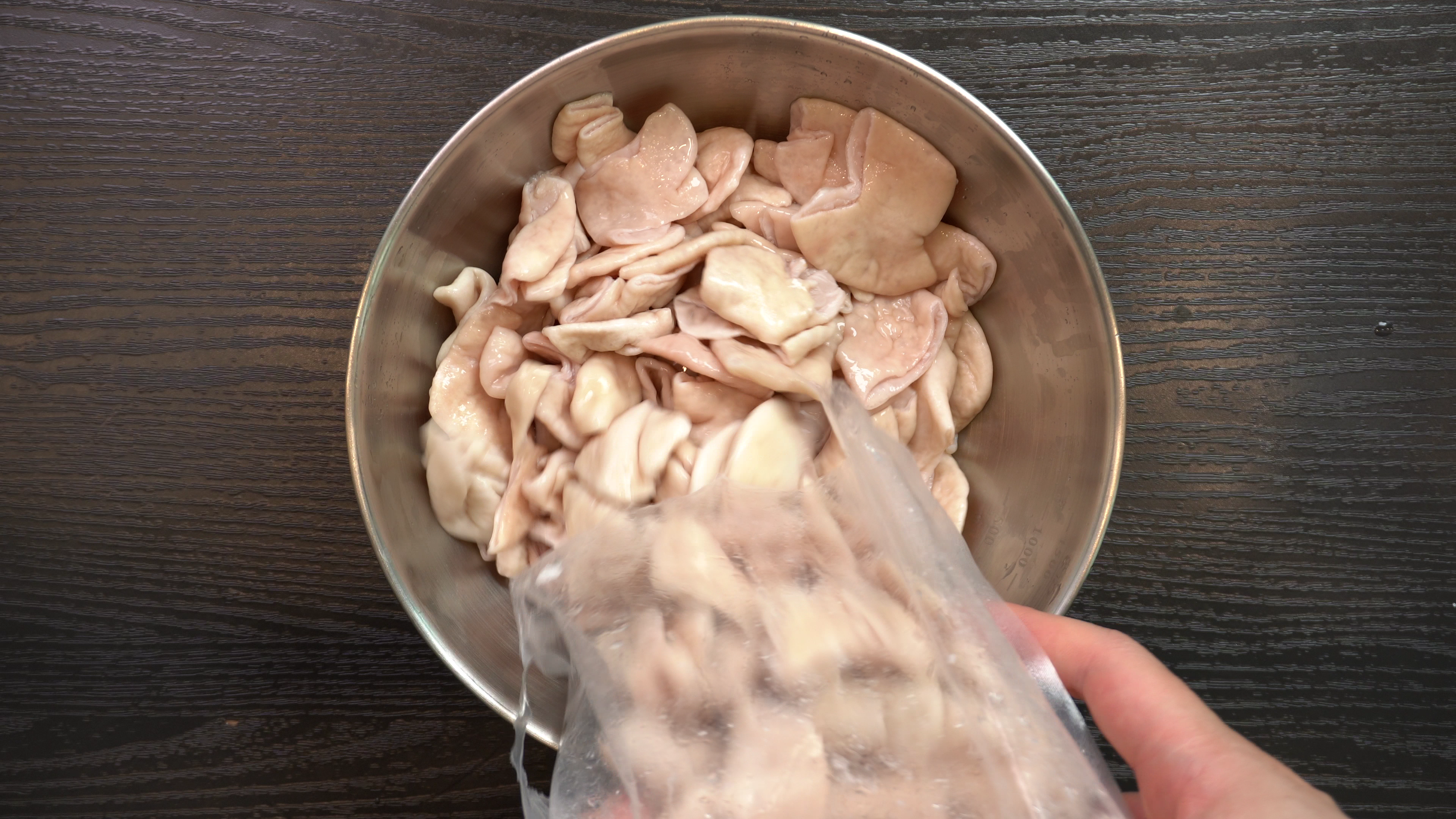 1. 삶은 돼지곱창 1kg 에 아래의 재료를 넣고 하루정도 냉장고에 넣어둔다.