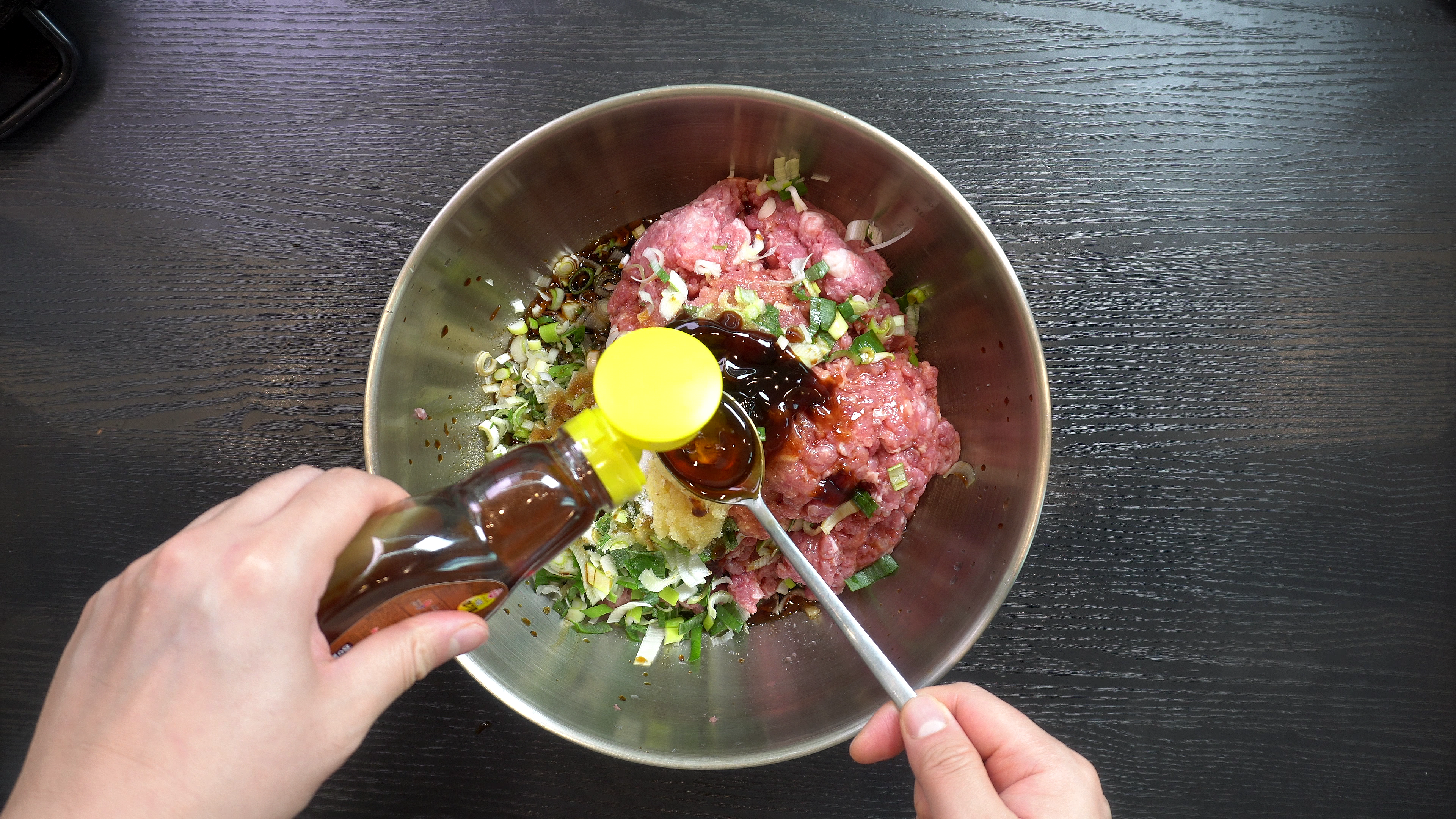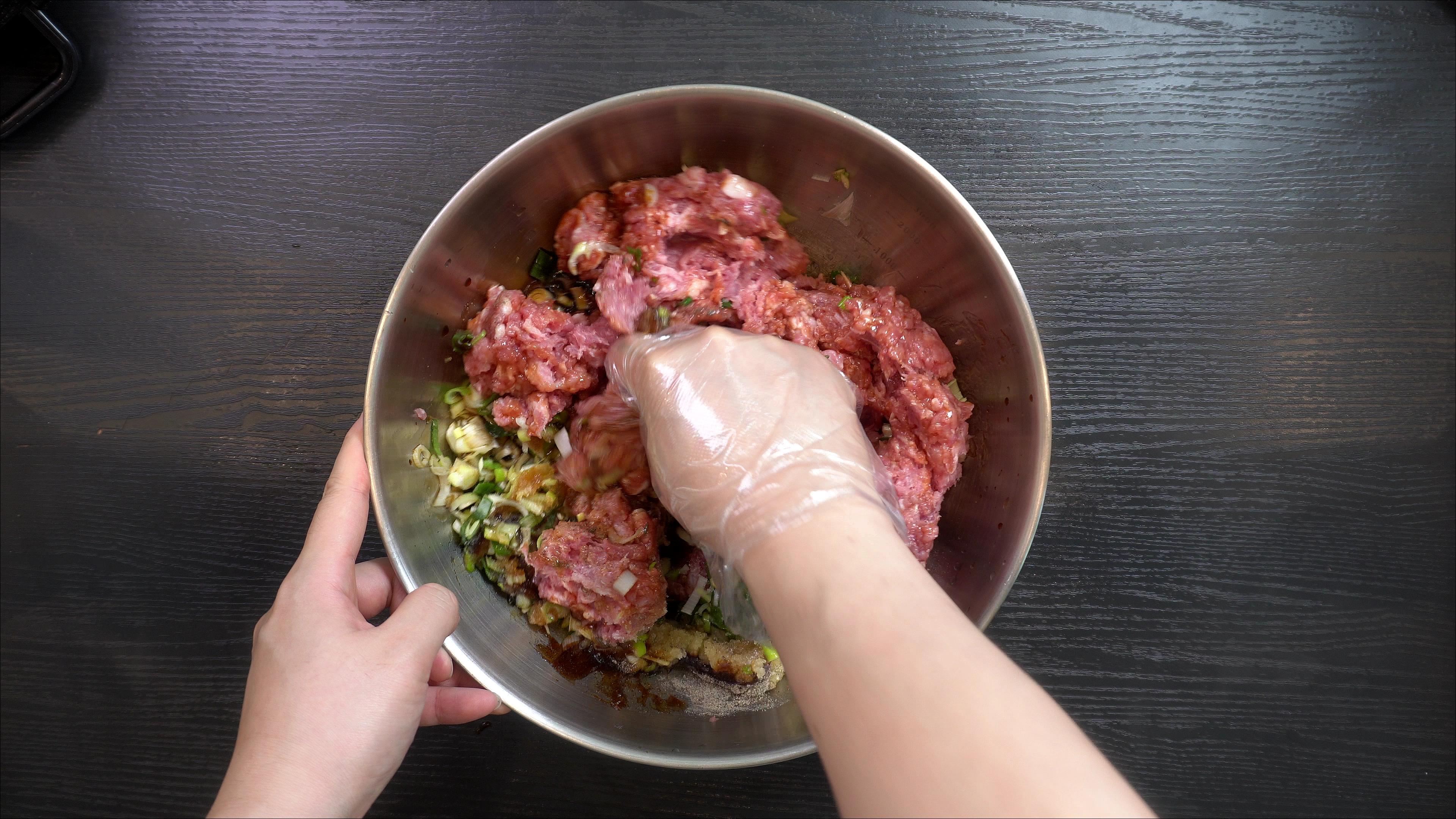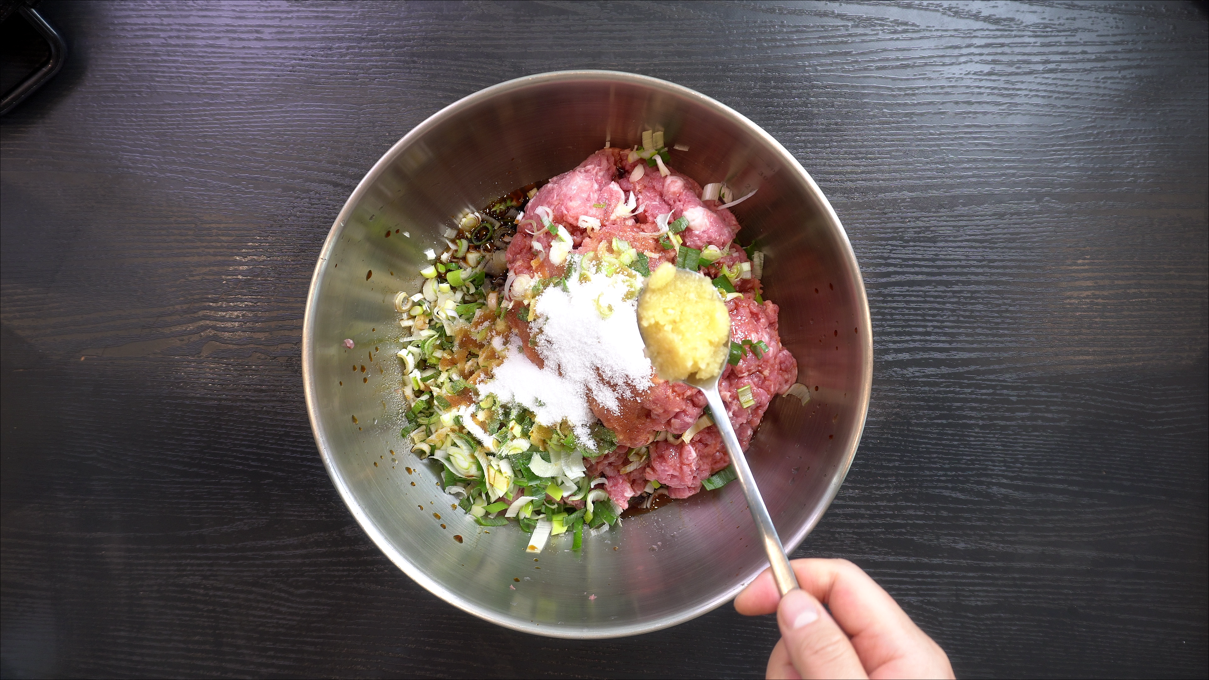 2. 다진 돼지고기 1.8kg 에 아래의 재료를 넣고 섞어준다.
