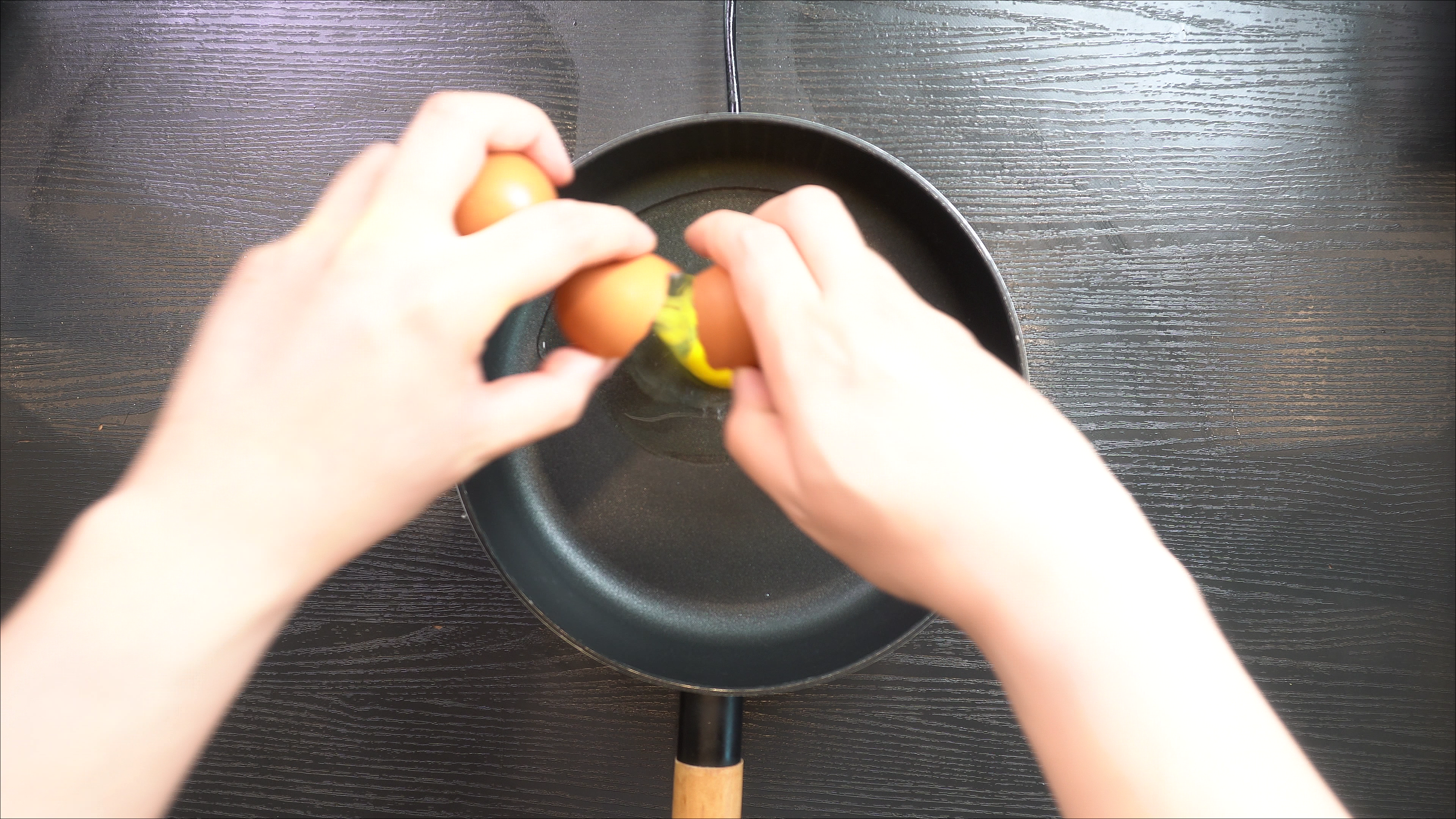 2. 다른 팬에 식용유를 두르고 계란을 풀어서 계란 스크램블을 만든다.