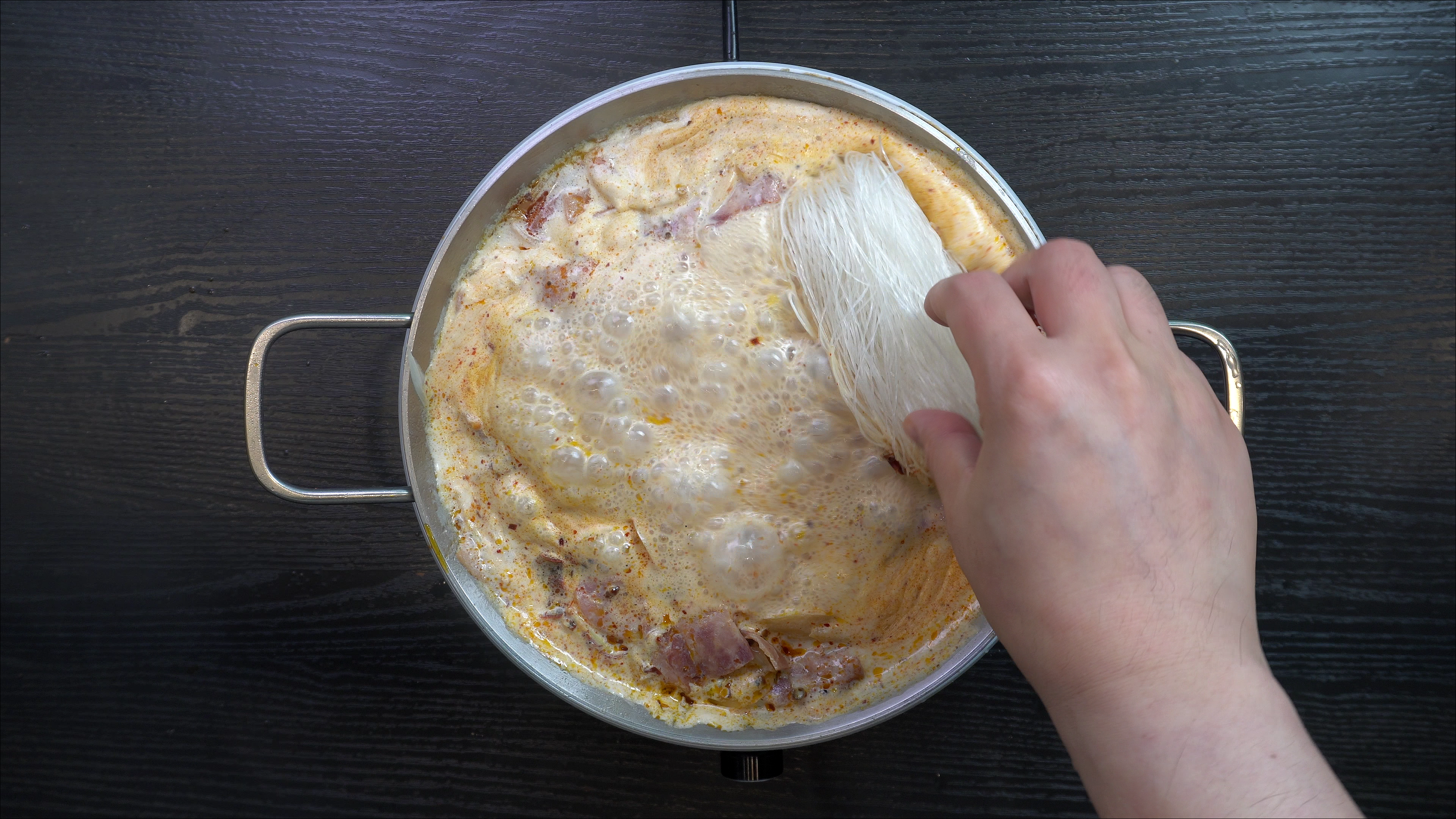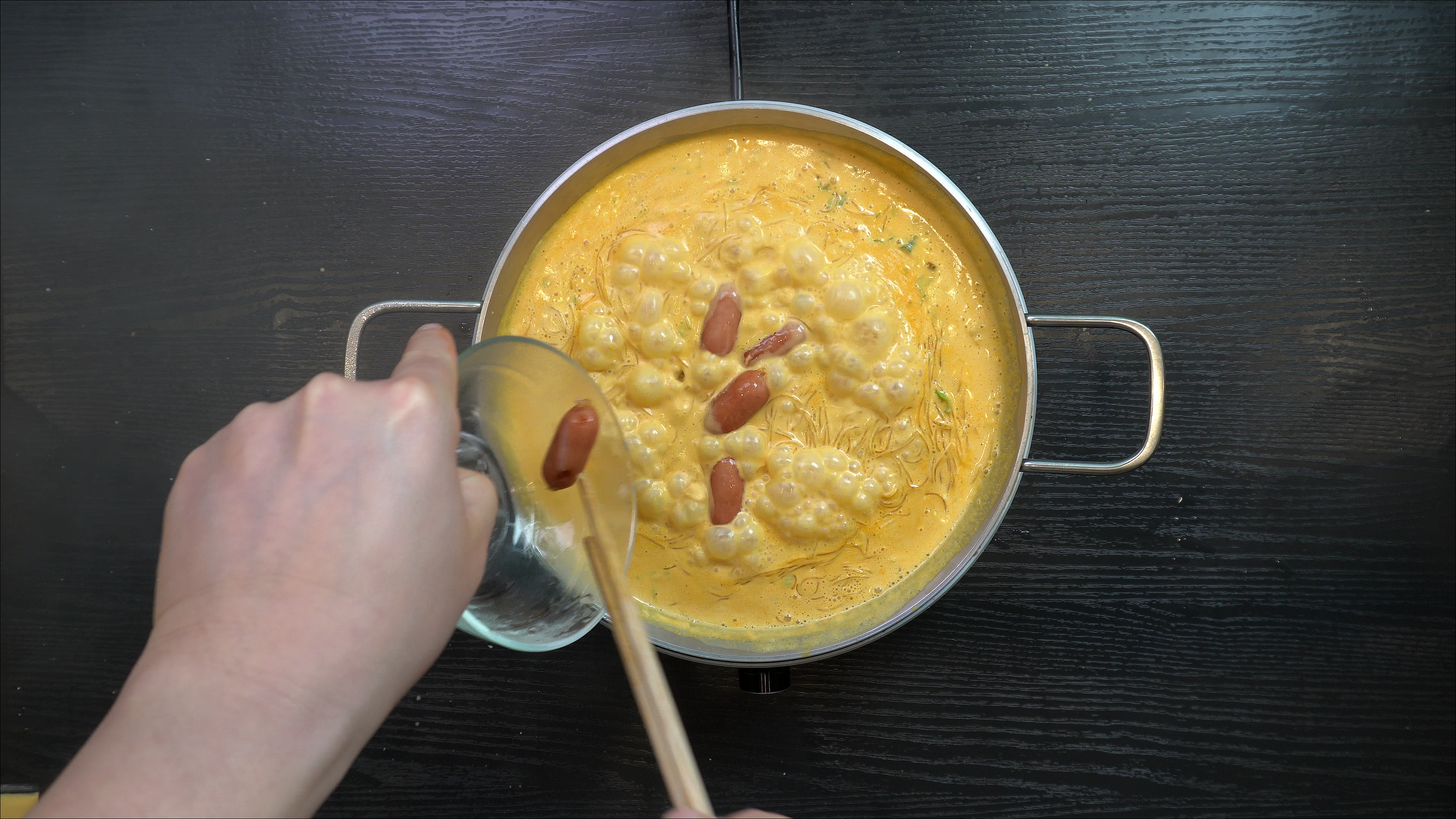 2. 양파가 투명해지면 아래의 재료를 넣고 실당면이 익을 때까지 끓여주면 완성!