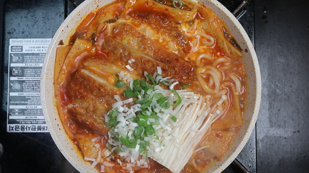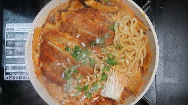유명 술집가면 꼭 시킨다는, 테이블 별로 하나씩은 올려져있는 돈가스 김치 나베 레시피를 가져왔다. 코로나로 인해 술집 방문도 자유롭지 않아 누군가에게는 추억의 음식이 되어버린 김치우동을 집에서도 간단히 만들 수 있는 레시피로, 찬바람이 쌀쌀하게 부는 요즘같은 날씨에 더욱 잘 어울리는 음식이다. 별다른 육수를 내지 않아도 몇가지 핵심적인 재료, 조리법만으로도 그 맛을 99%이상 똑같이 따라할 수 있는 레시피이기에 요리 초심자도 충분히 성공할 수 있는 음식이다.