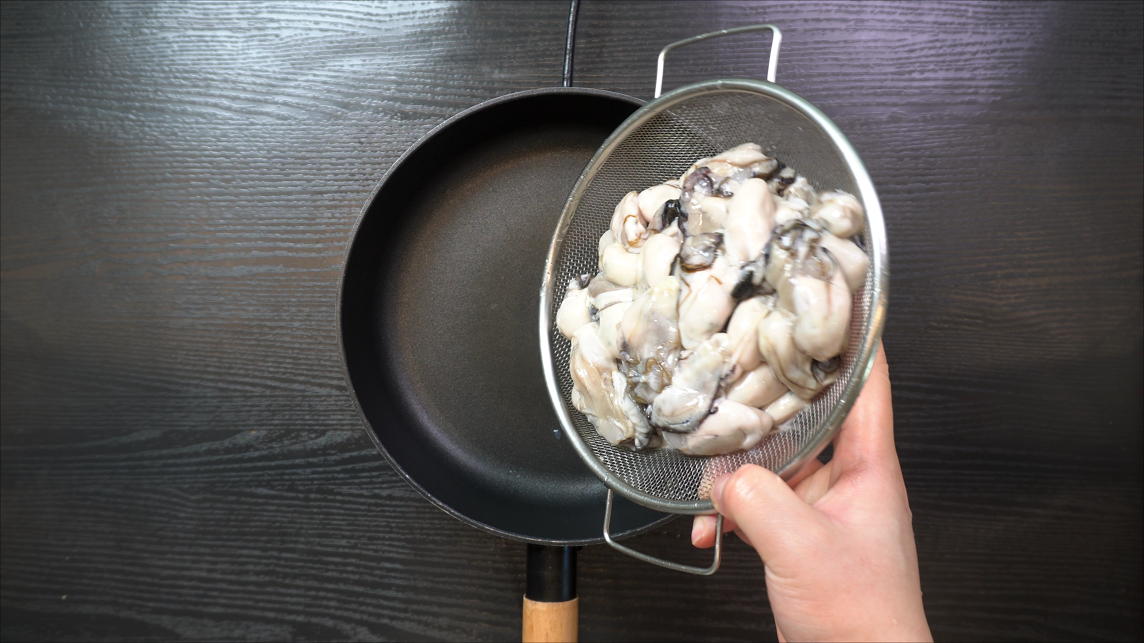 1. 깨끗하게 씻은 굴 1kg를 수분이 모두 날라갈 때까지 끓인다.