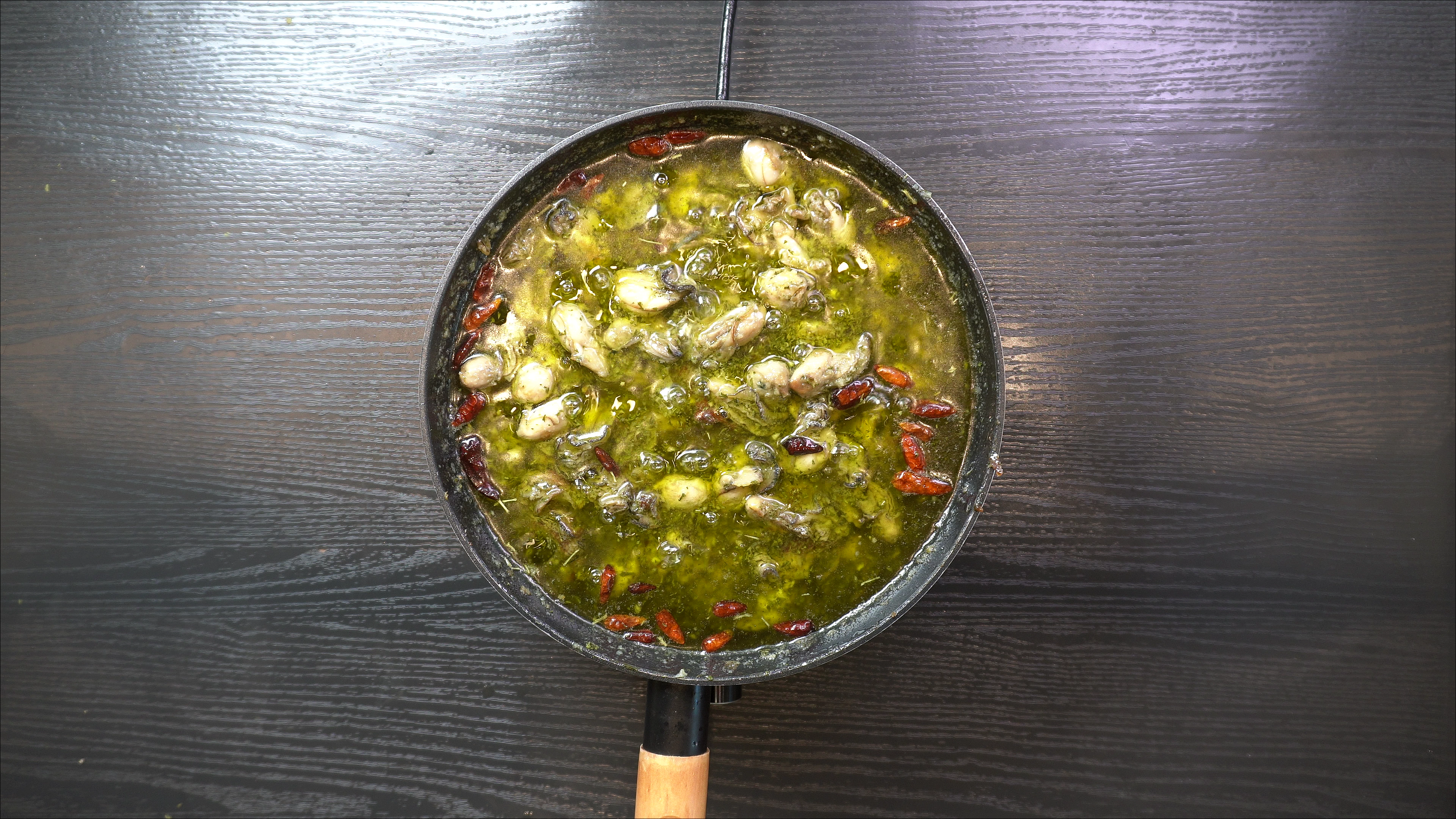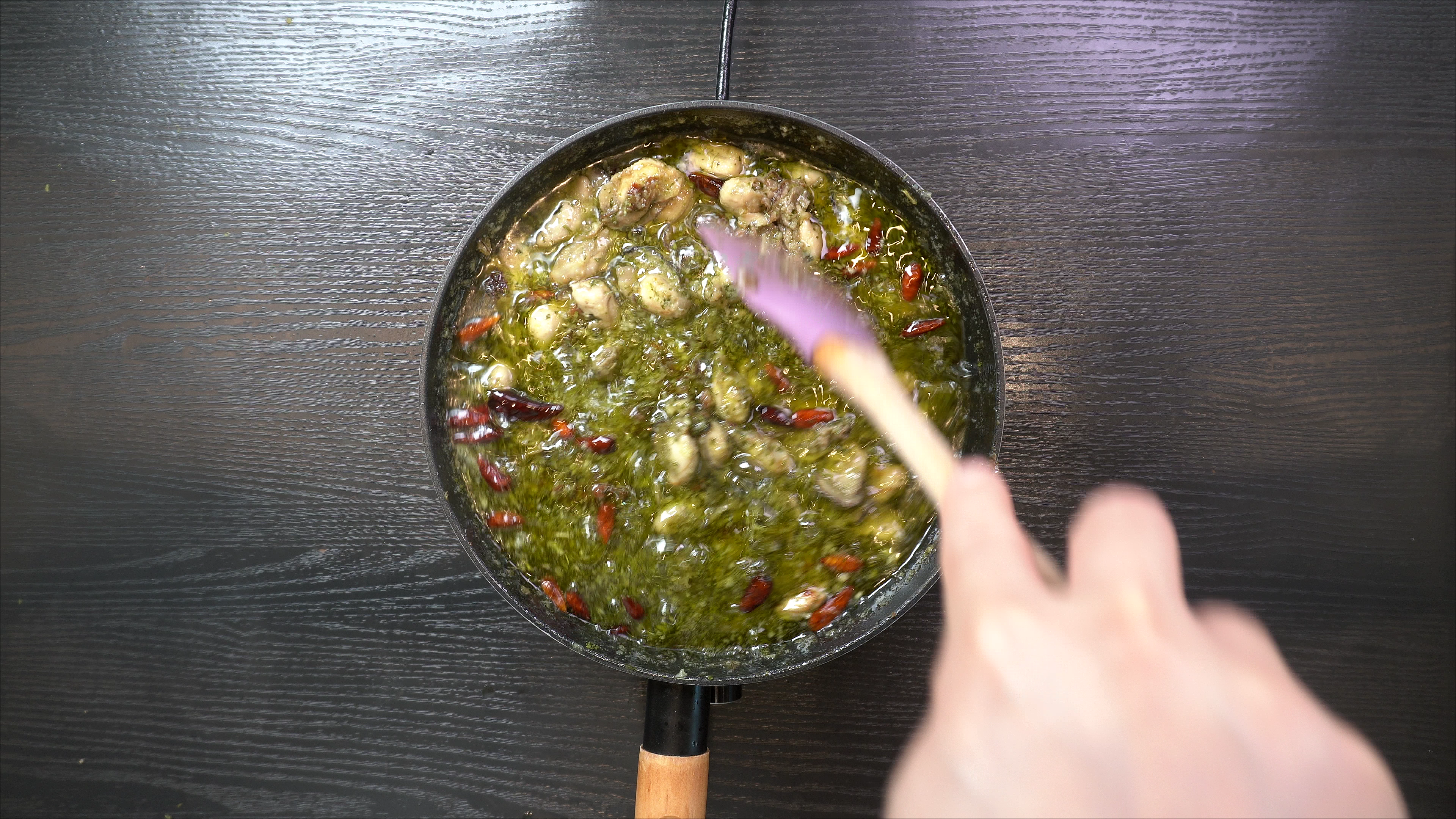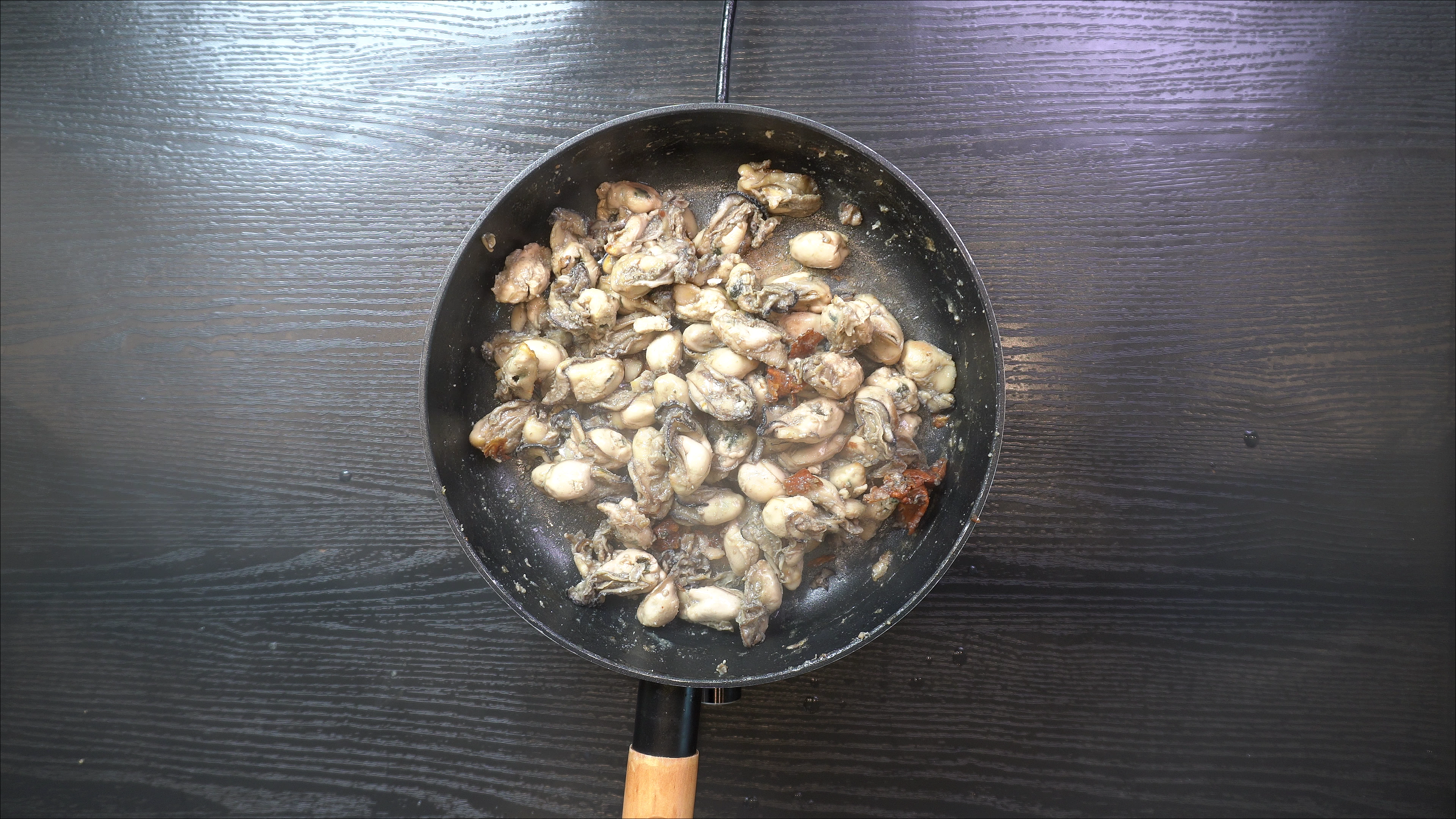 2. 수분이 모두 날라가면 아래의 재료를 넣고 끓여주면 굴오일 완성!