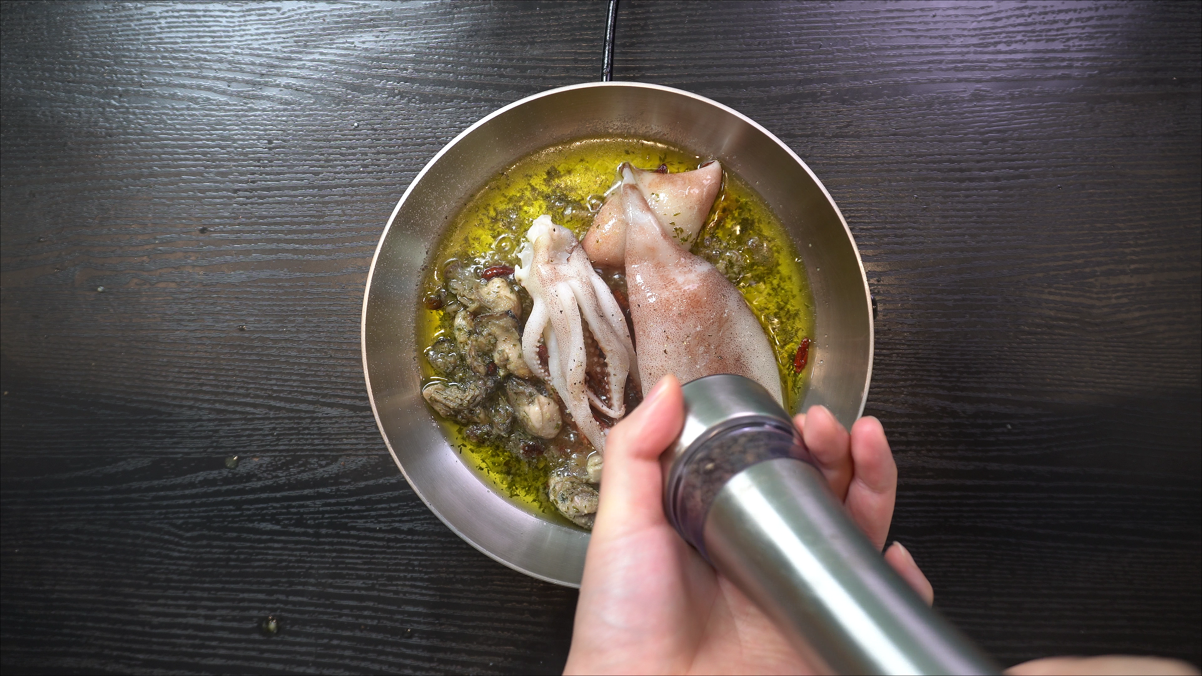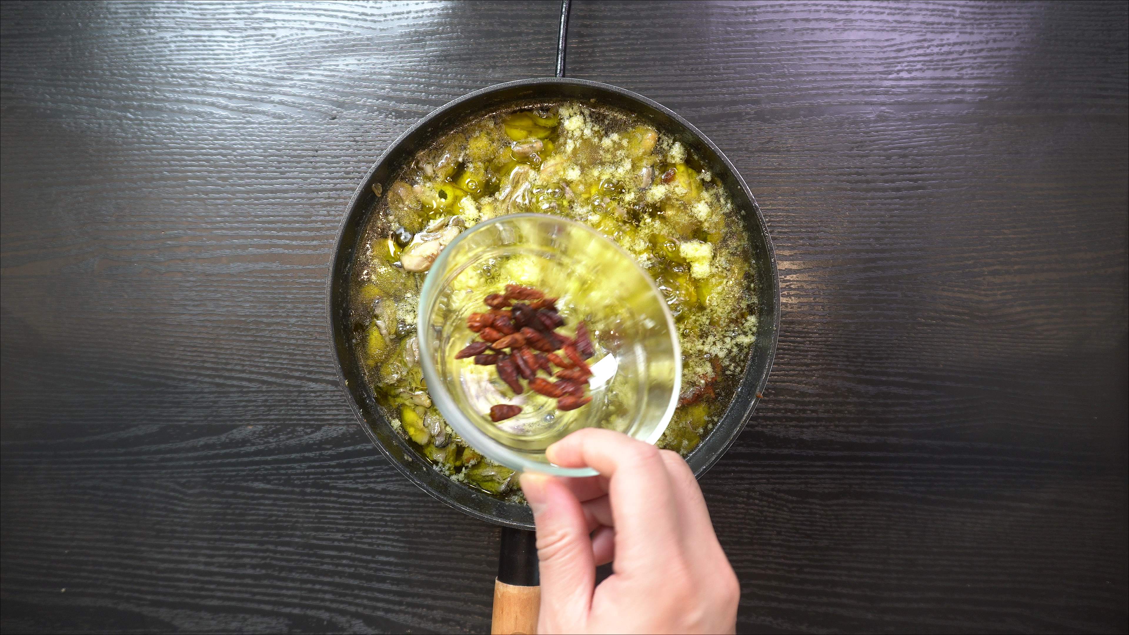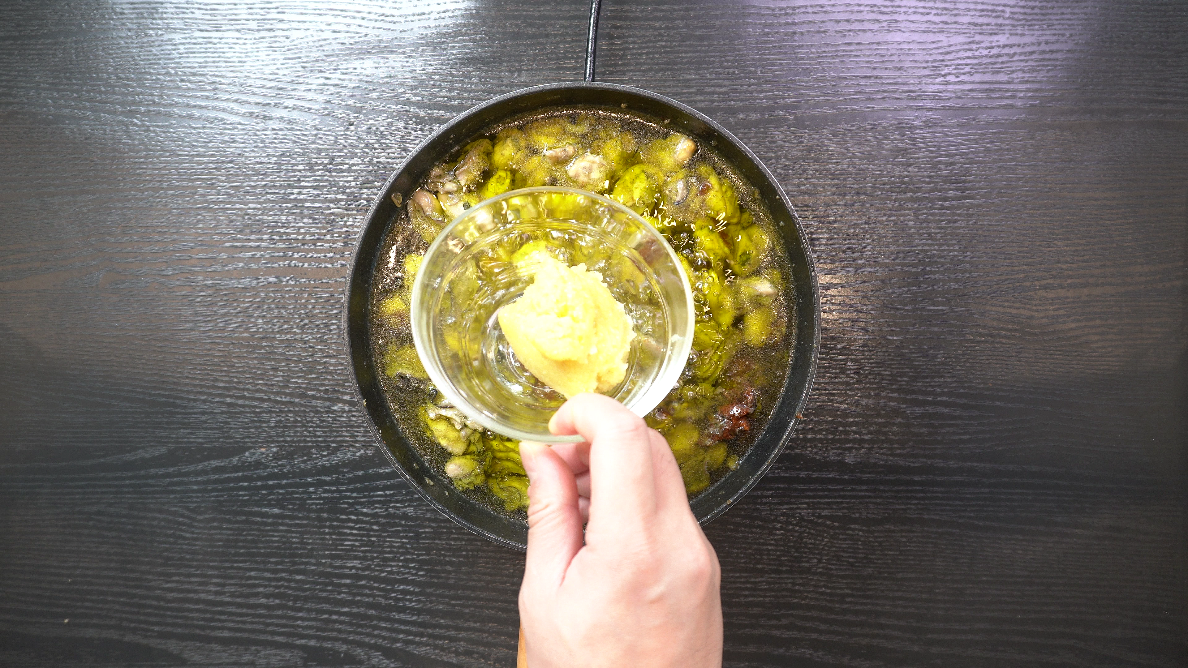 2. 수분이 모두 날라가면 아래의 재료를 넣고 끓여주면 굴오일 완성!