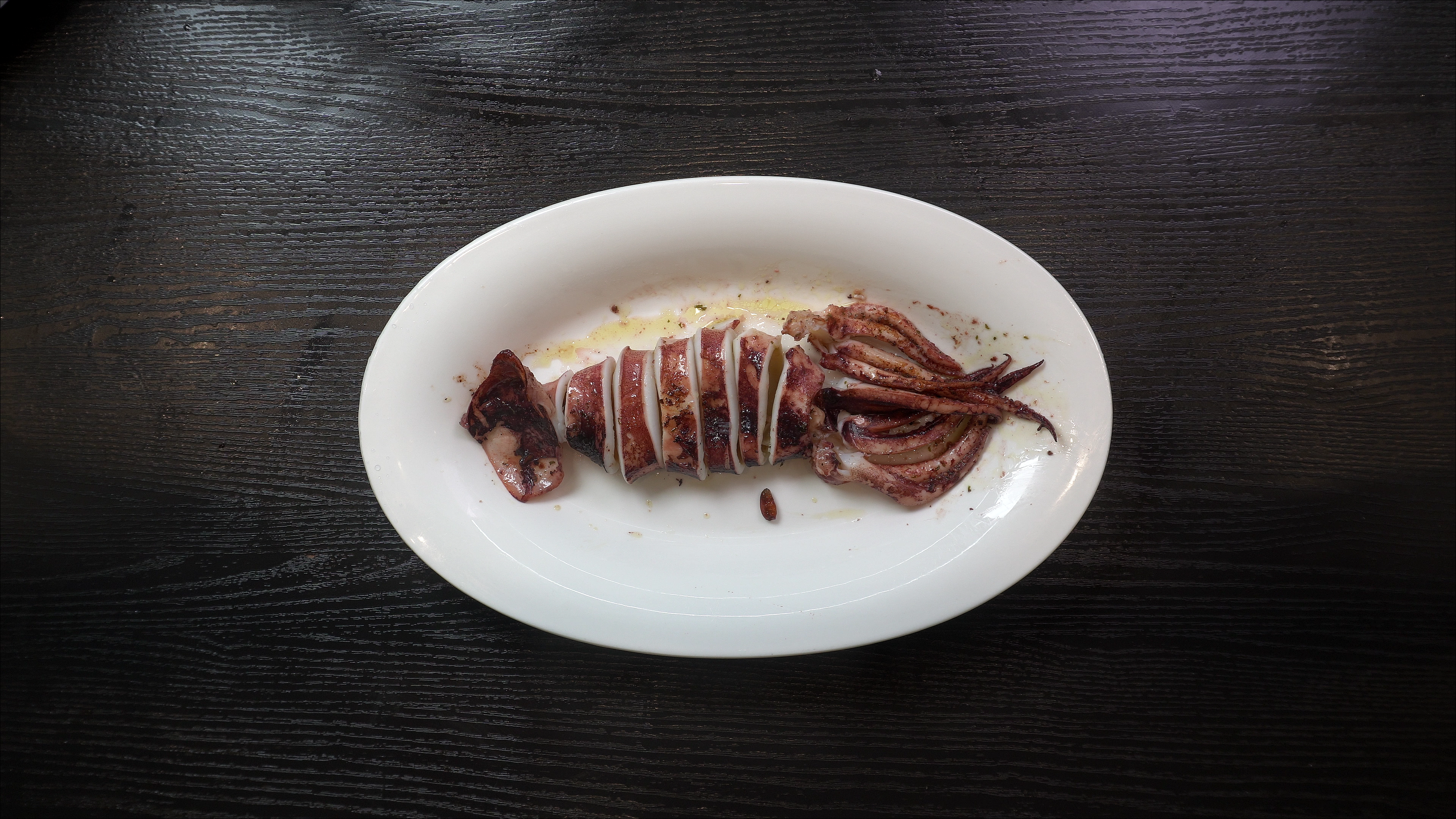 2. 노릇노릇하게 구워진 오징어를 그릇에 옮겨서 잘라주고 파슬리 뿌려주면 완성!