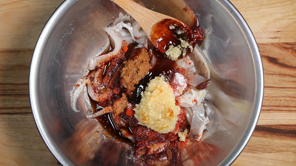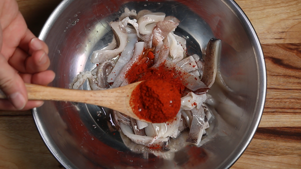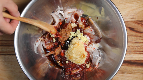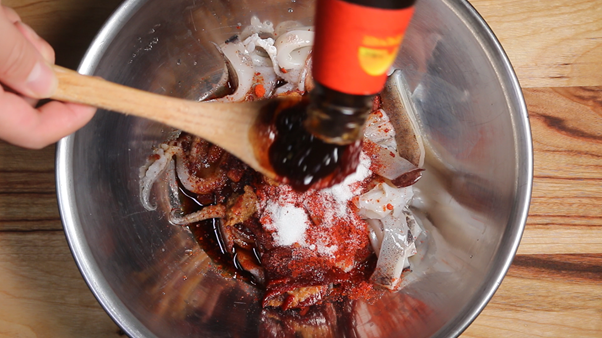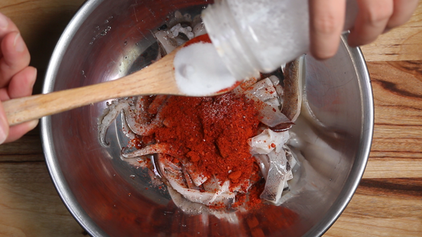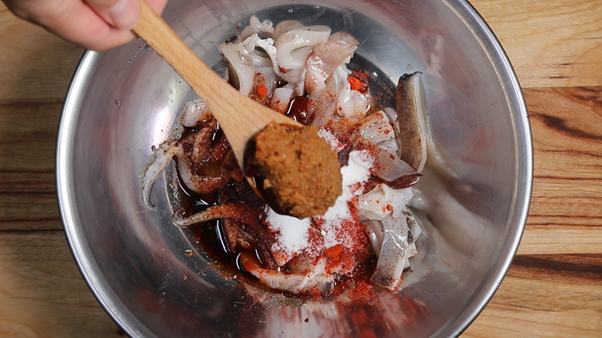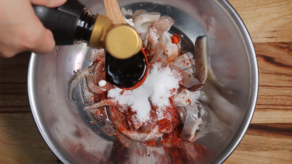3. 자른 오징어를 볼에 담고 아래의 재료를 넣고 잘 버무려 잠시 재워둔다.