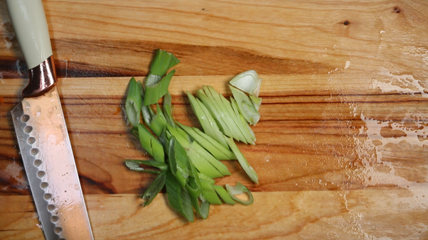 8. 대파 1/2대를 어슷썰기해서 준비한다.