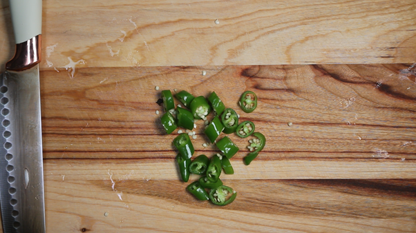 7. 청양고추 2개를 작게 썰어 준비한다.
