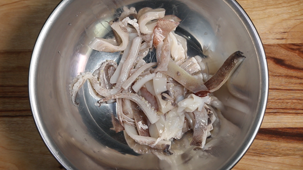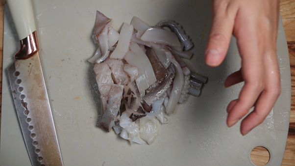 * 오징어 손질의 자세한 과정은 아래의 ‘오징어 볶음’ 레시피에 준비되어 있으니 참고하면 된다.