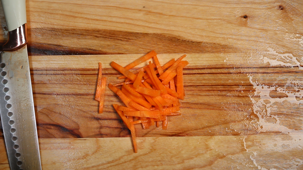 6. 당근 1/5개를 얇게 채썰어 준비한다.