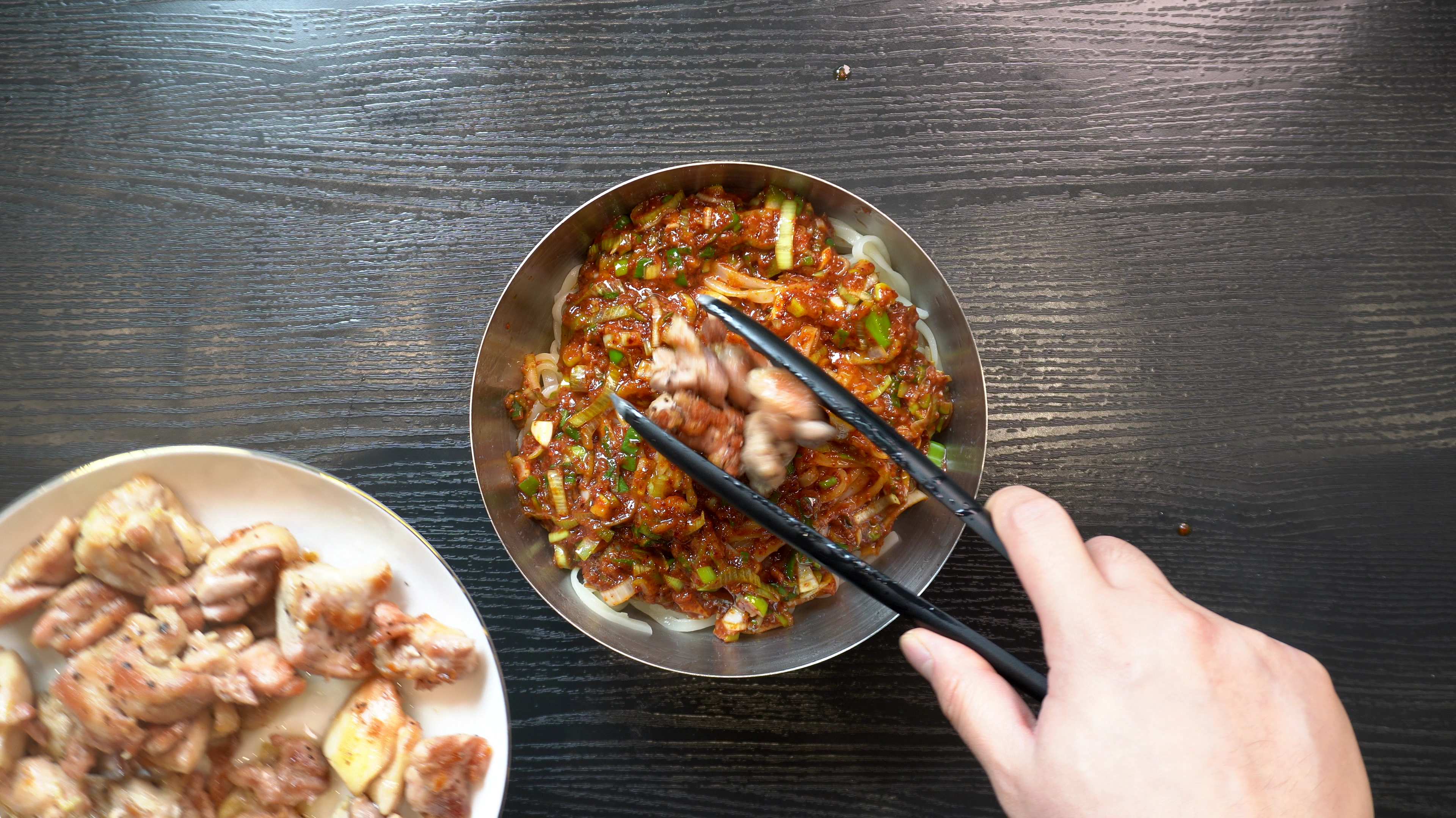 4. 삶은 칼국수면에 아래의 재료들을 올려주면 완성!