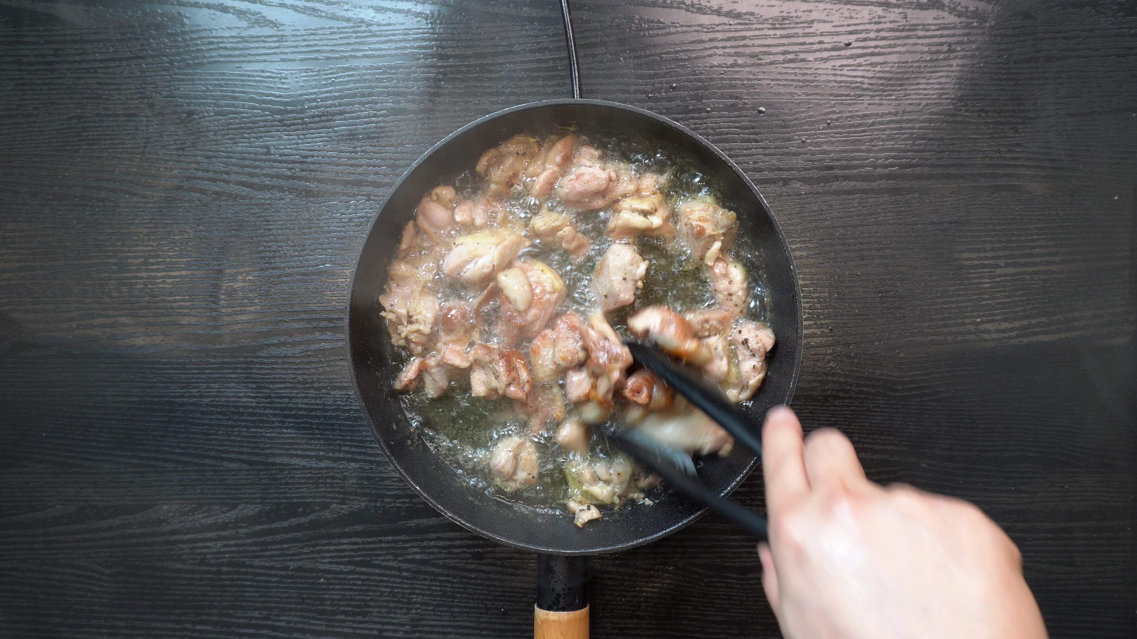 2. 닭이 익으면 닭은 빼두고 쎈불로 기름을 더 끓인다.