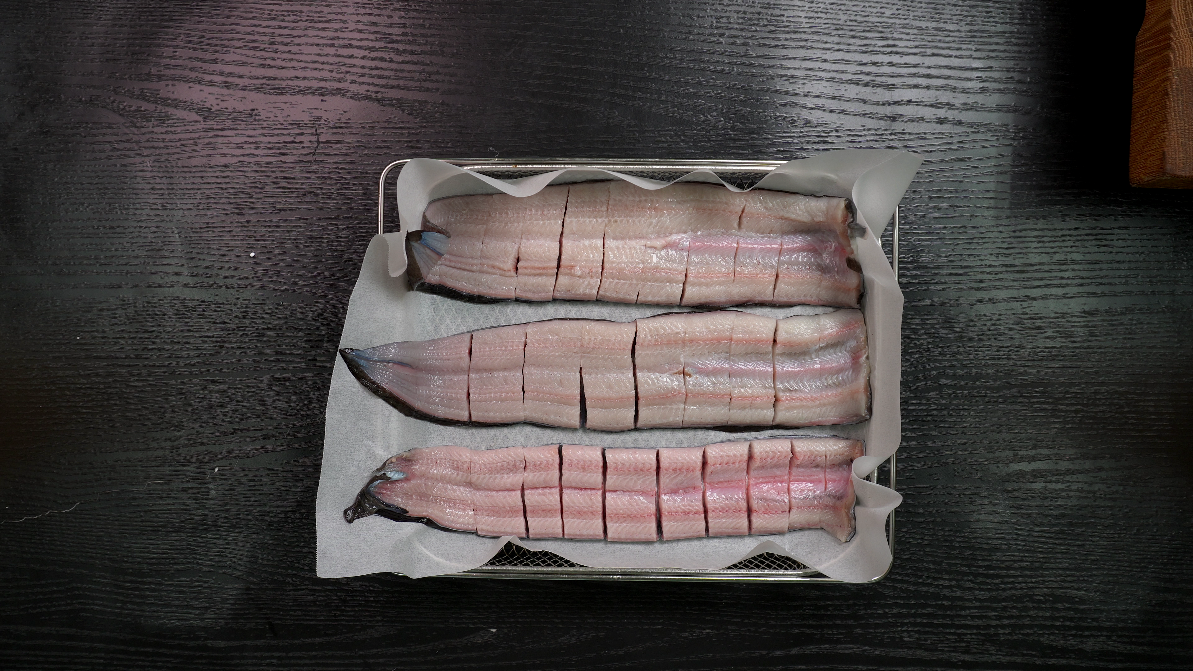 3. 민물장어 500g 에 칼집을 내고 아래의 재료로 간을 해준 뒤 180도 에어프라이어에 15분간 굽는다.