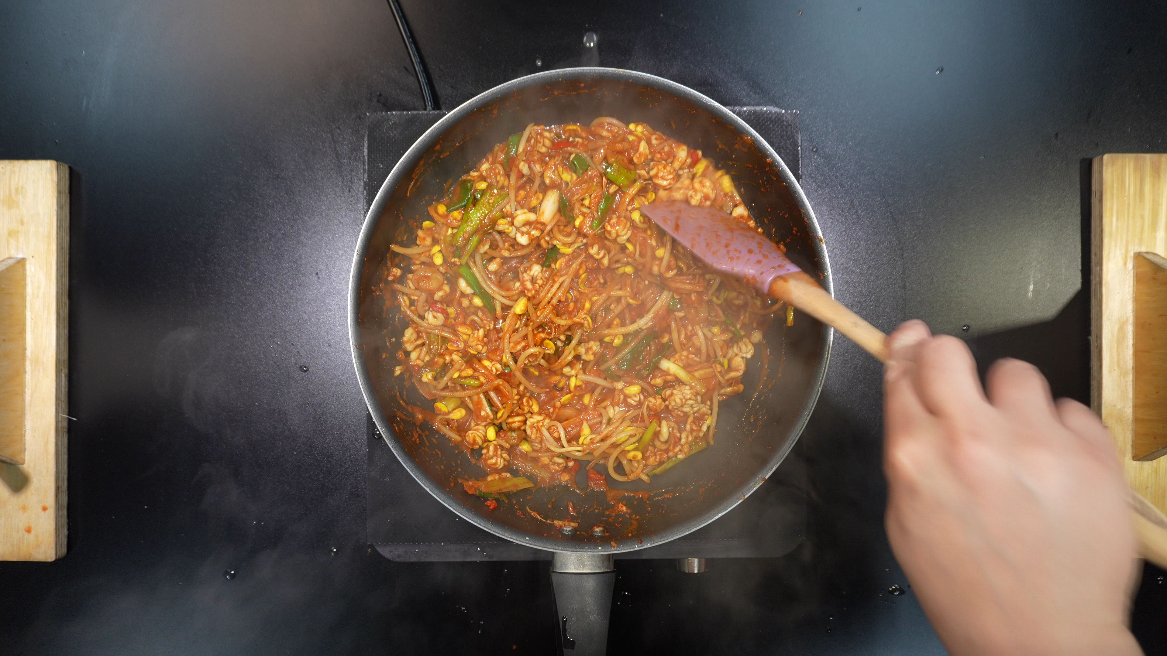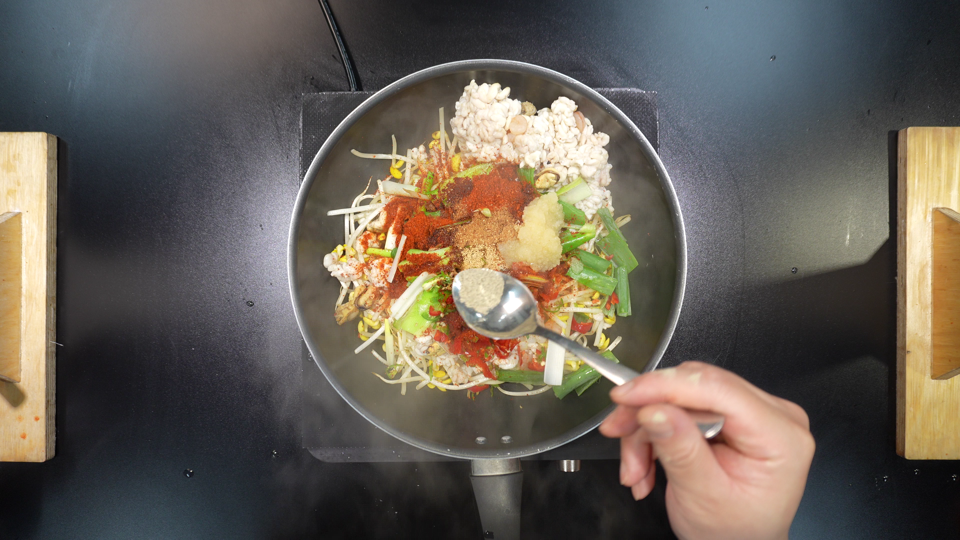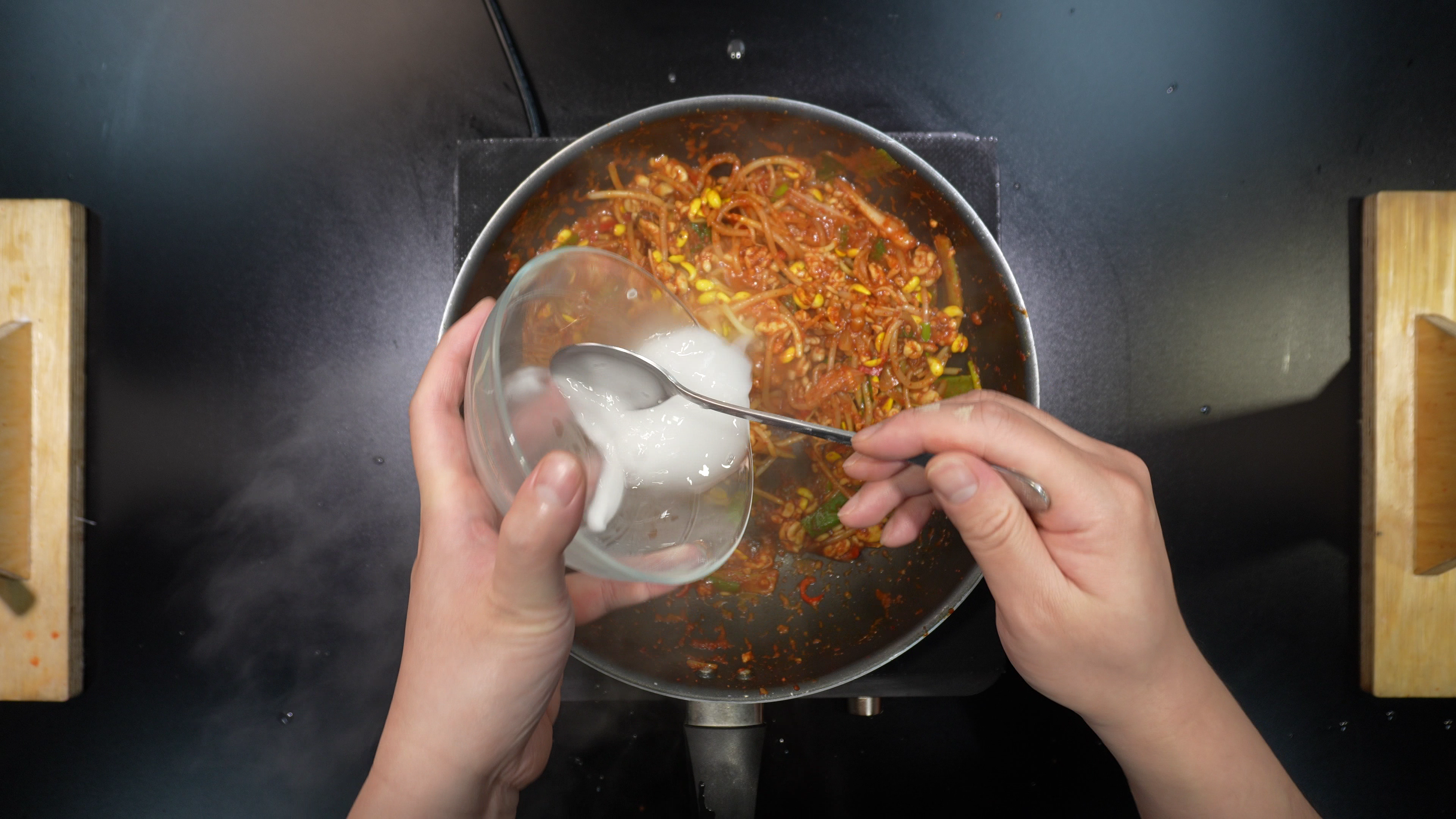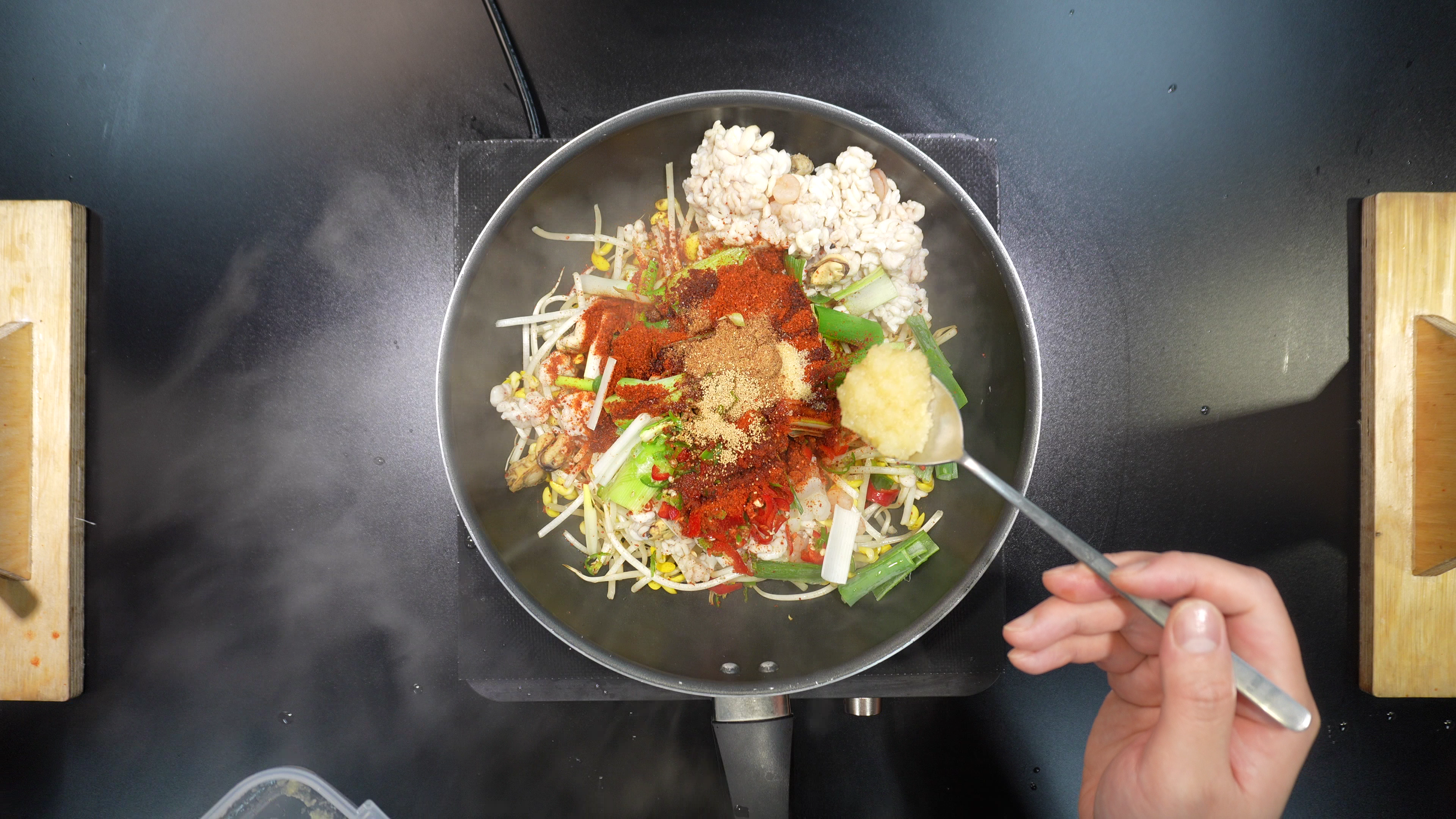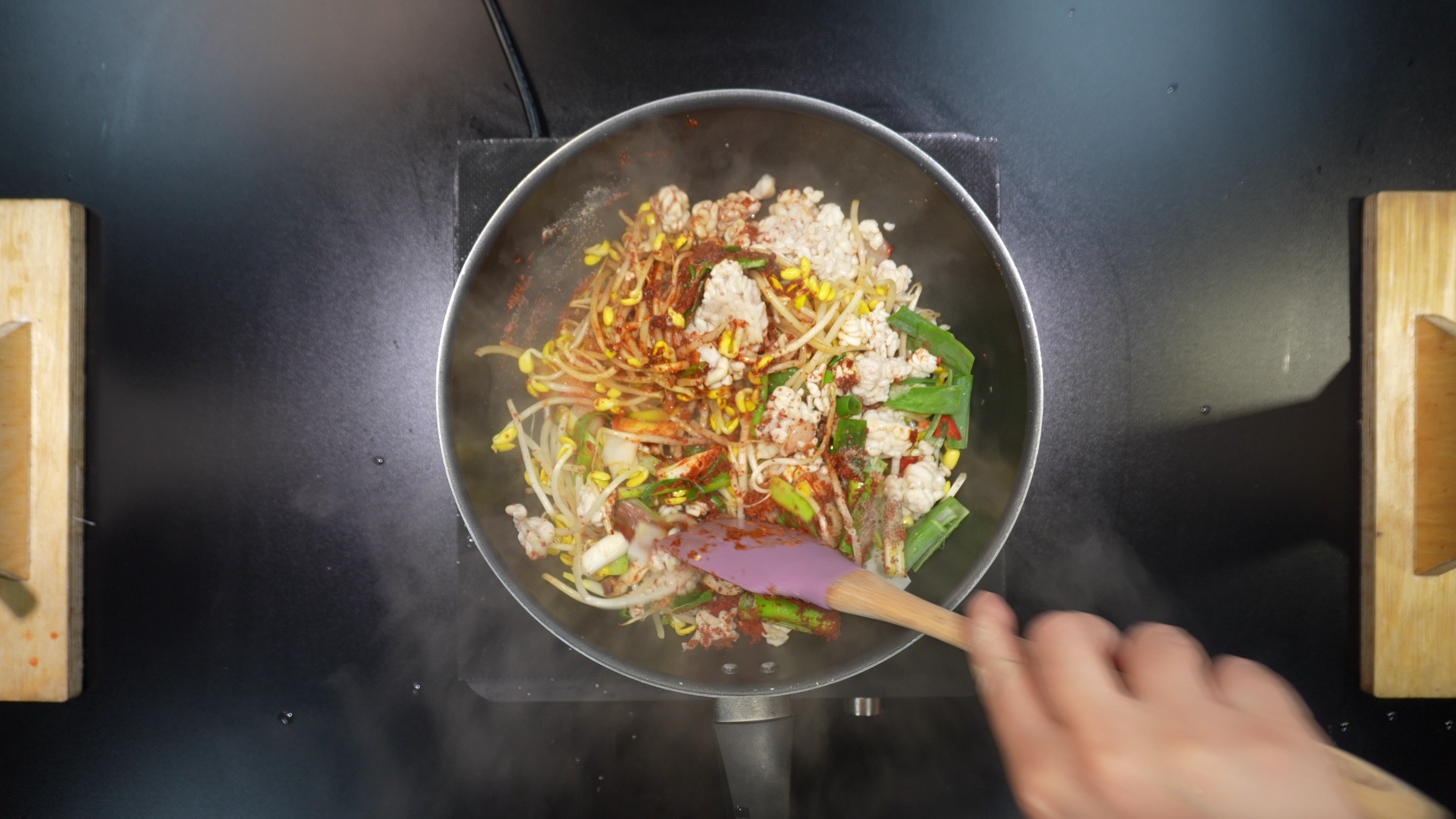5. 팬에 아래의 재료를 넣고 볶는다.