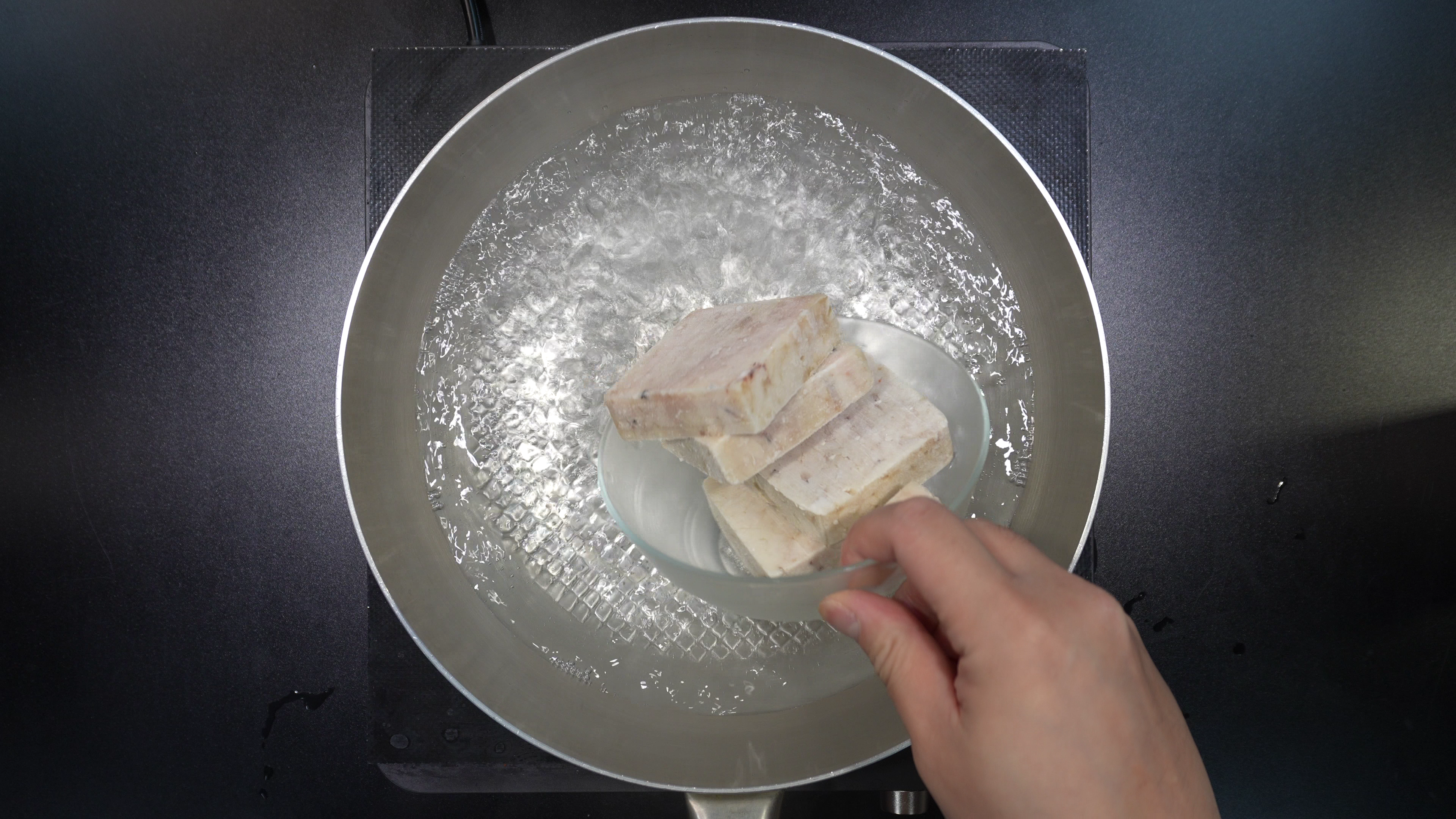 1. 물에 대구뽈살을 넣고 해동시킨다.