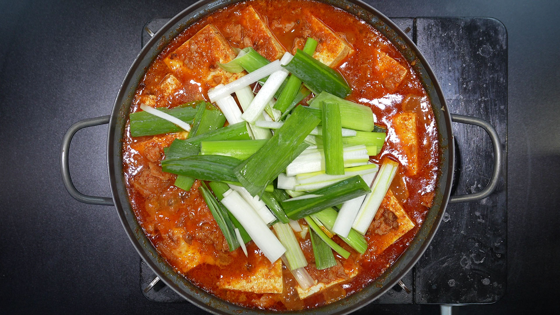 16) 한 입 크기로 썰어준 두부를 냄비에 넣는다
