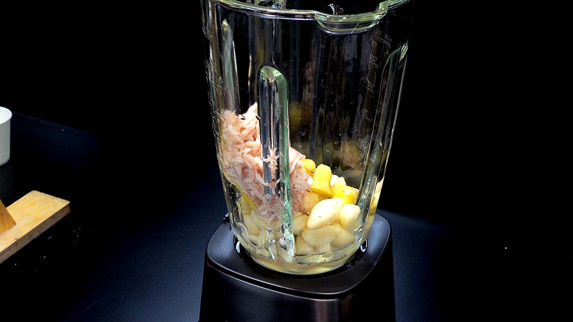 5)멸치다시마 육수 300ml를 넣고 갈아준다
