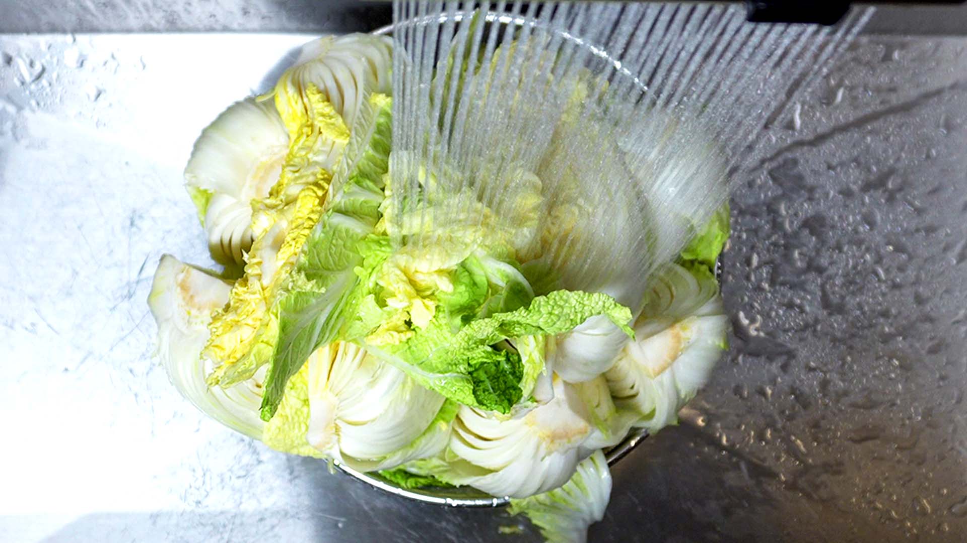 6) 다 절인 배추를 꺼내 씻어준다