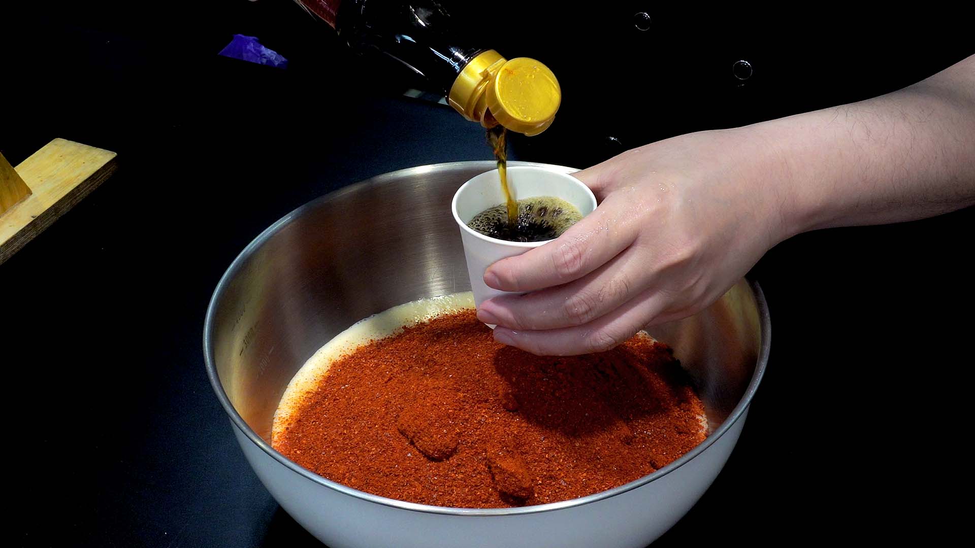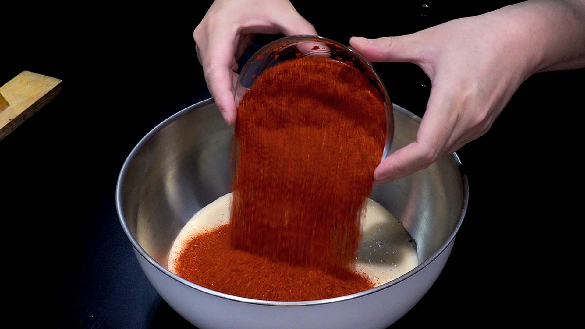 1) 일반 고춧가루 300g을 넣어준다