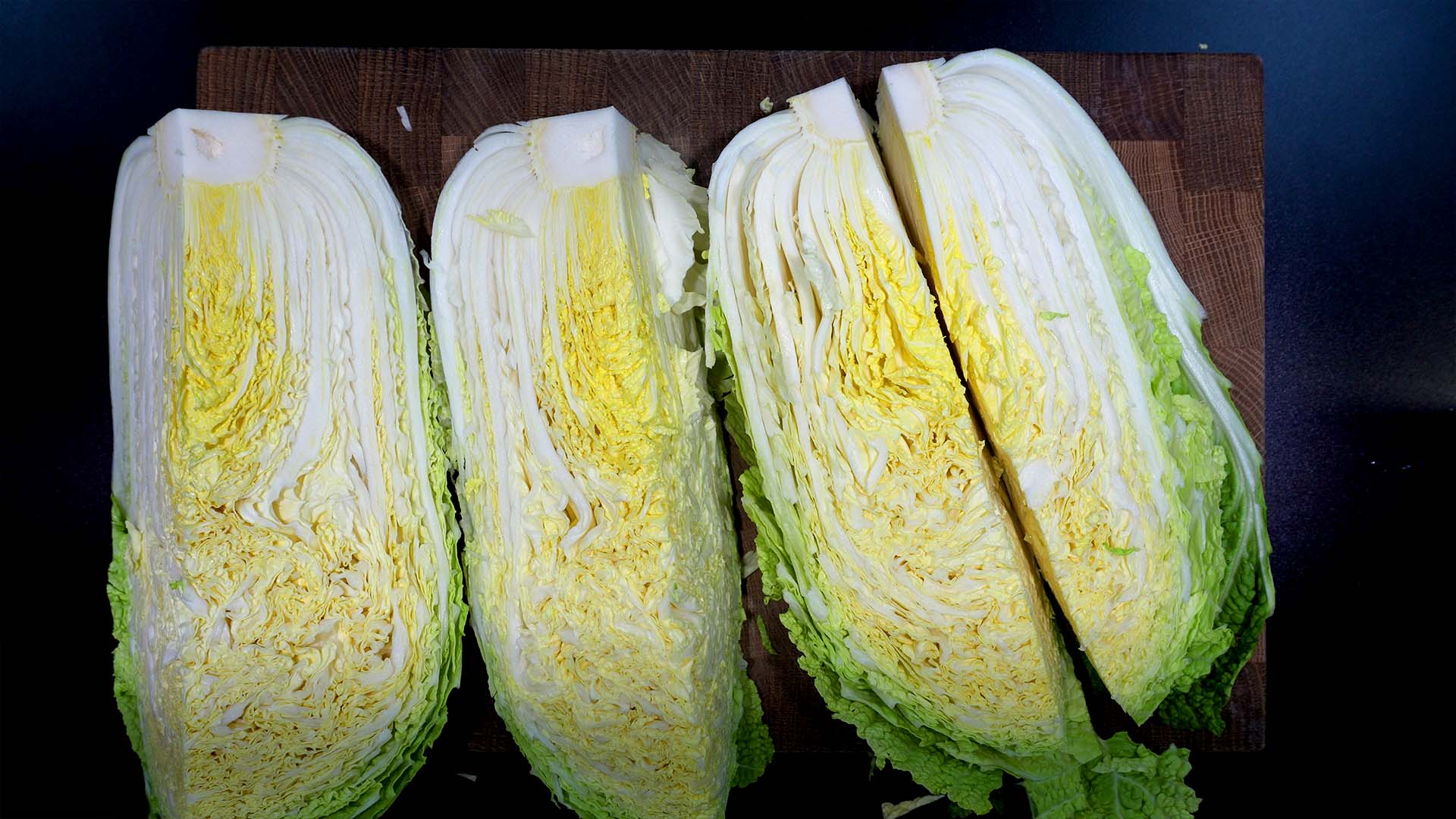 1) 배추 3통을 네쪽으로 잘라준다