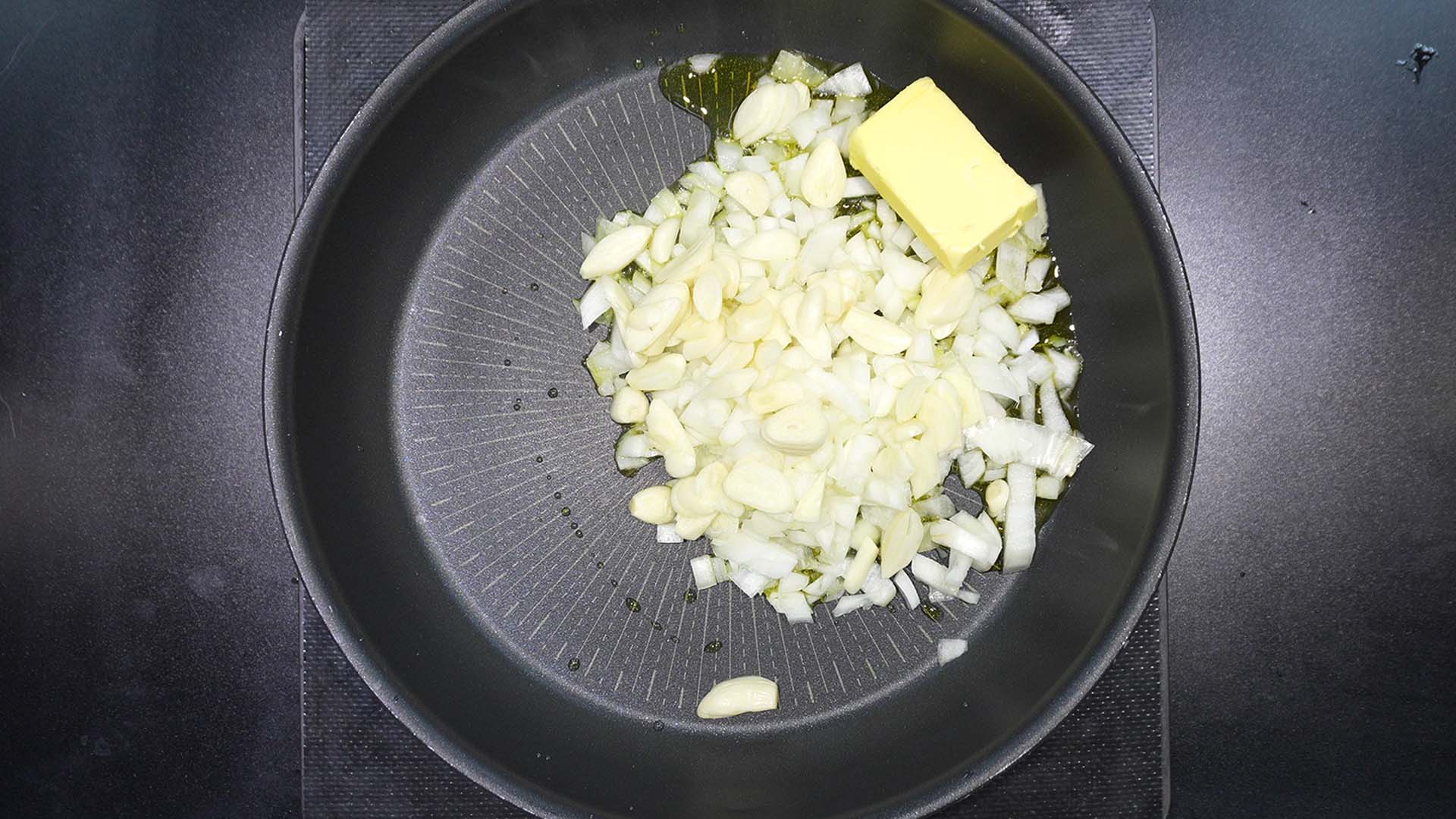 3) 마늘을 팬에 넣어준다