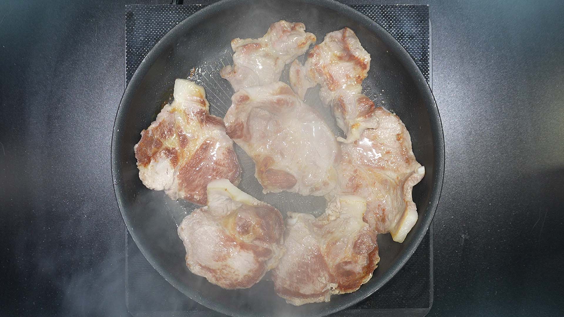 1) 목살을 팬에 굽는다