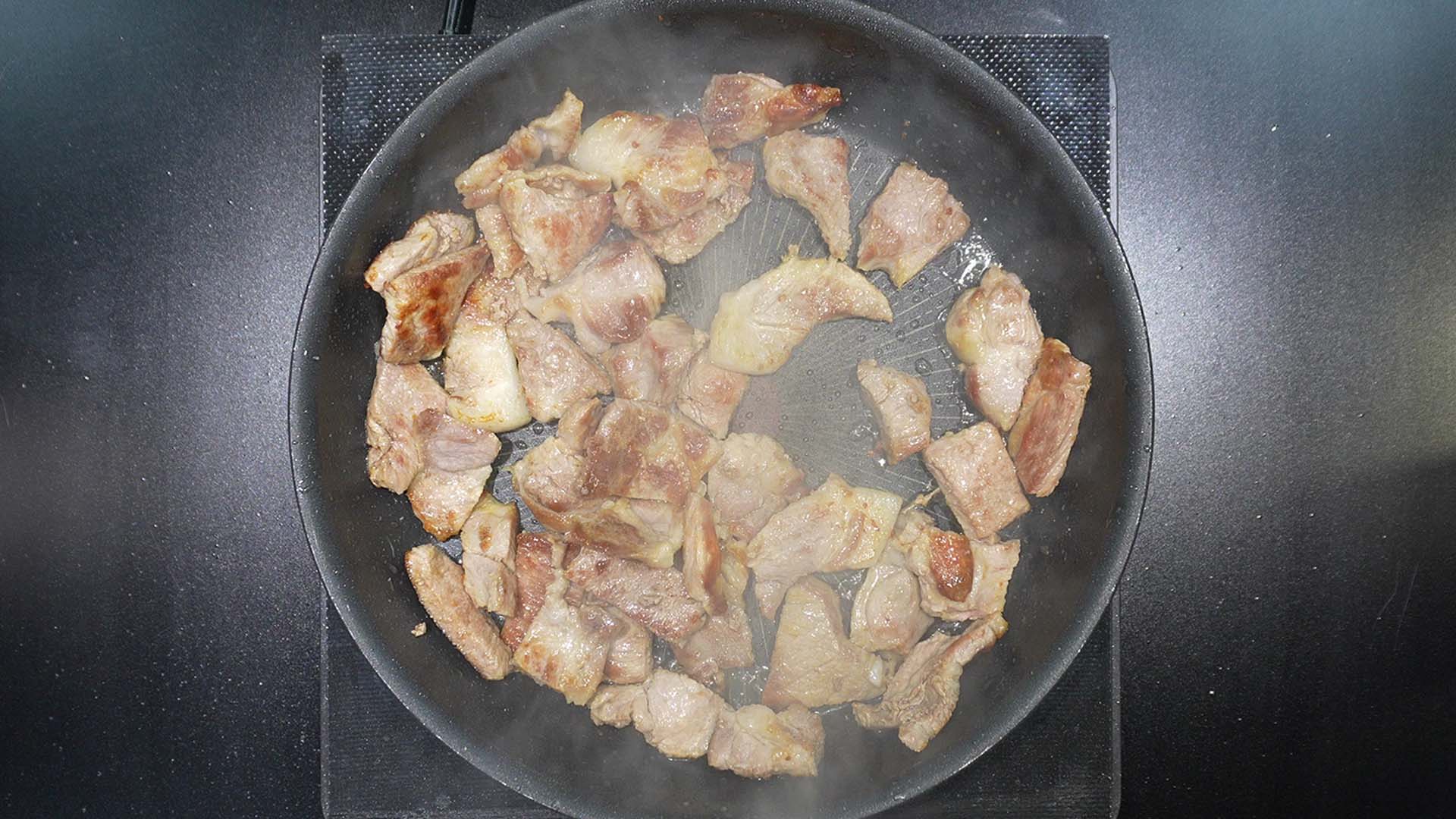 4) 다 익은 목살을 접시에 따로 빼준다