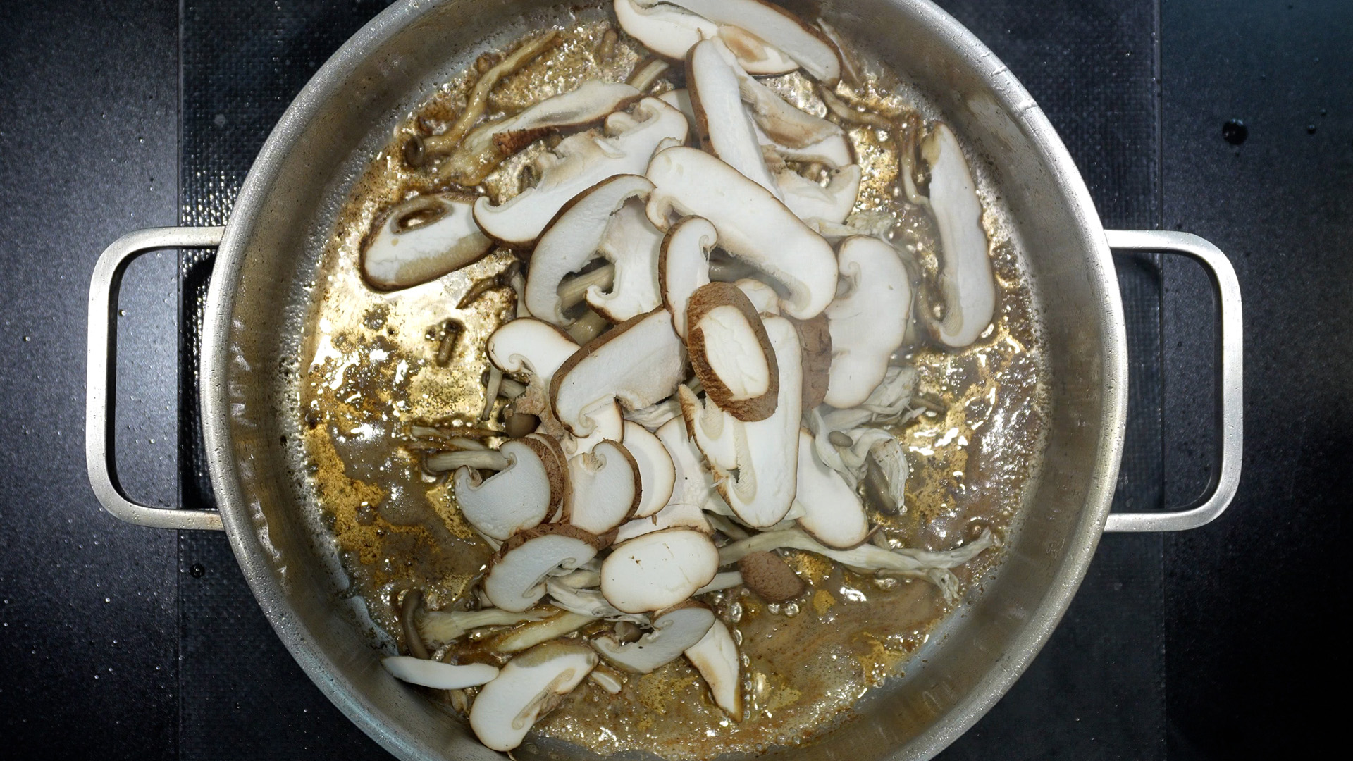 21) 버섯이 버터를 다 빨아들일 때까지 볶아준다.
