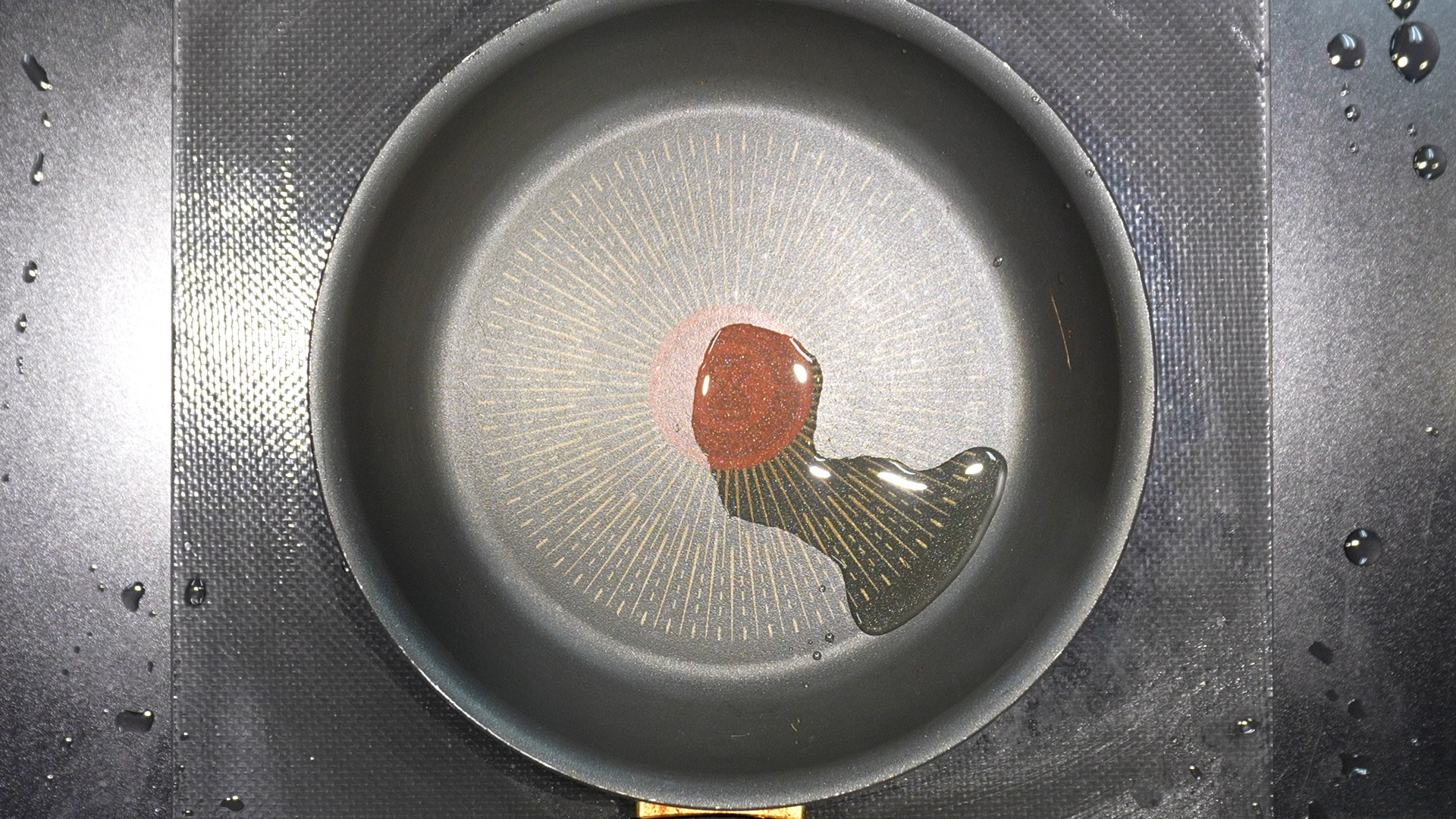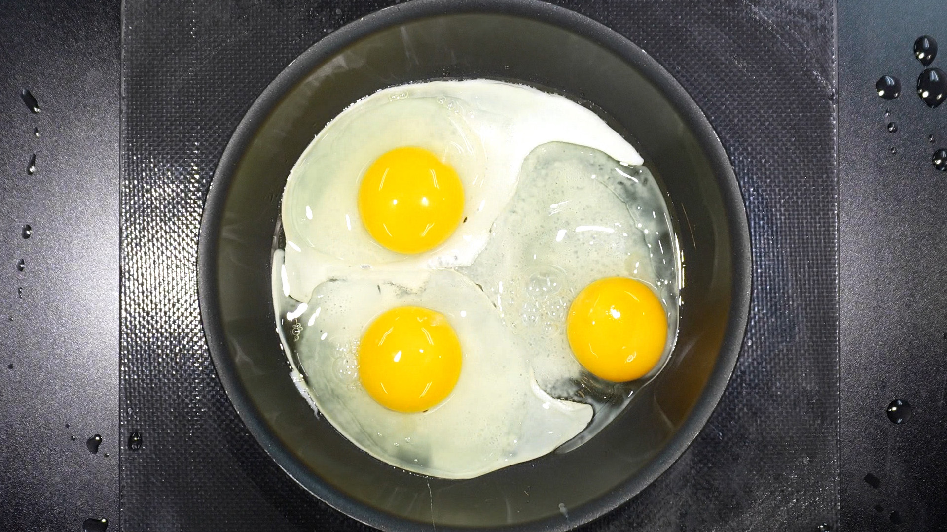 28) 후라이팬에 기름을 두르고 토핑으로 쓸 반숙 계란후라이를 만든다.