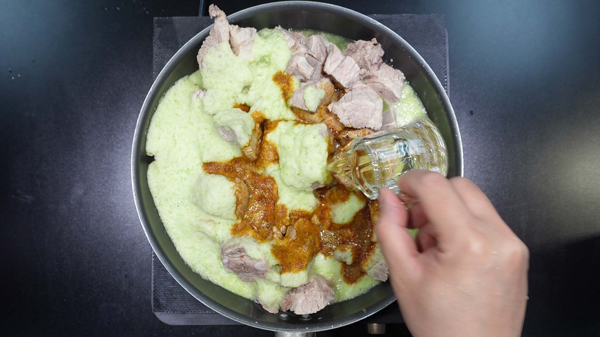 4) 맛술을 냄비에 넣어준다