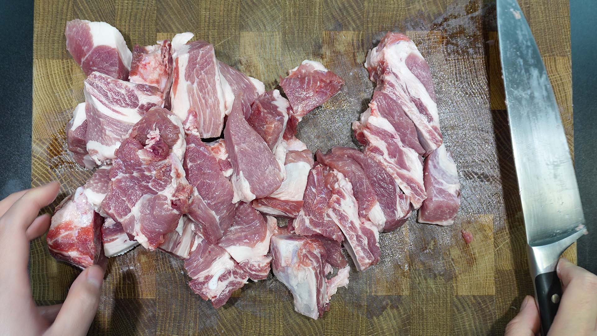 2) 앞다리살을 먹기 좋은 크기로 잘라준다