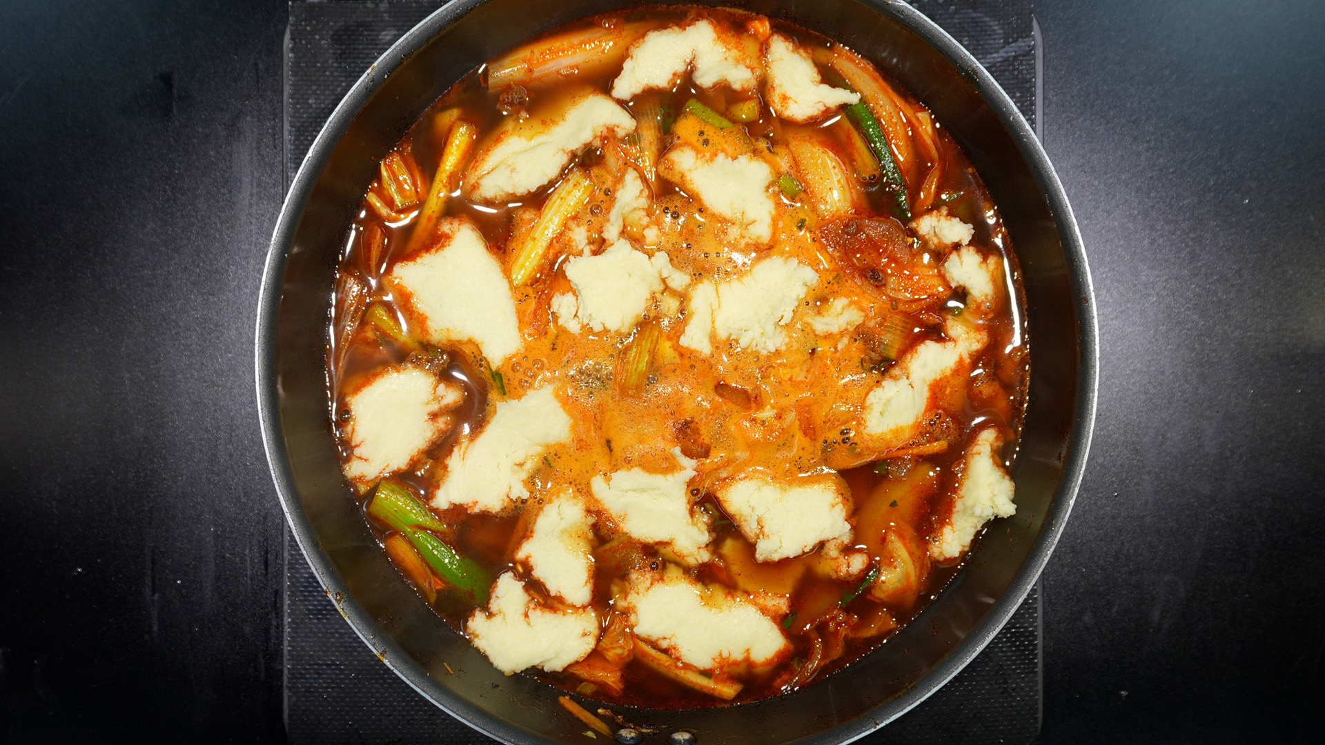 12) 물이 끓으면 수제비를 넣는다